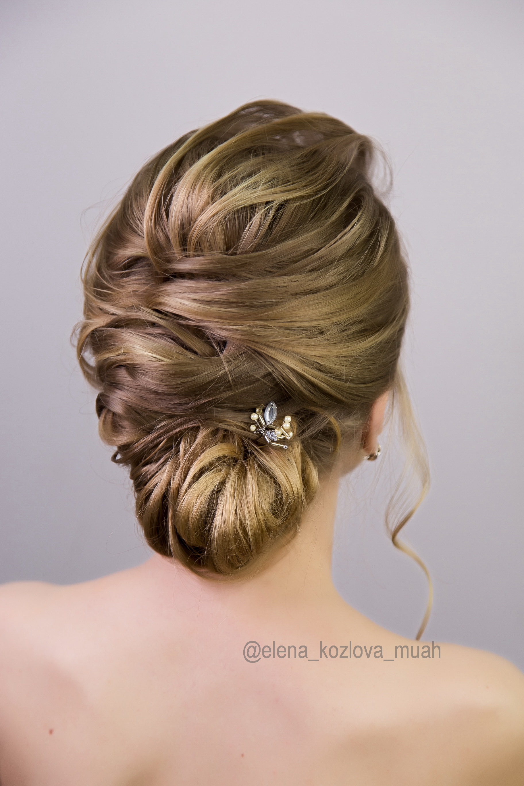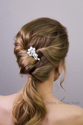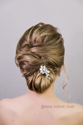 - свадебная (стойкие объемные локоны, греческая коса, воздушный пучок, текстурные локоны, крепление фаты на гребешок или невидимки): 70 руб. 140 руб.