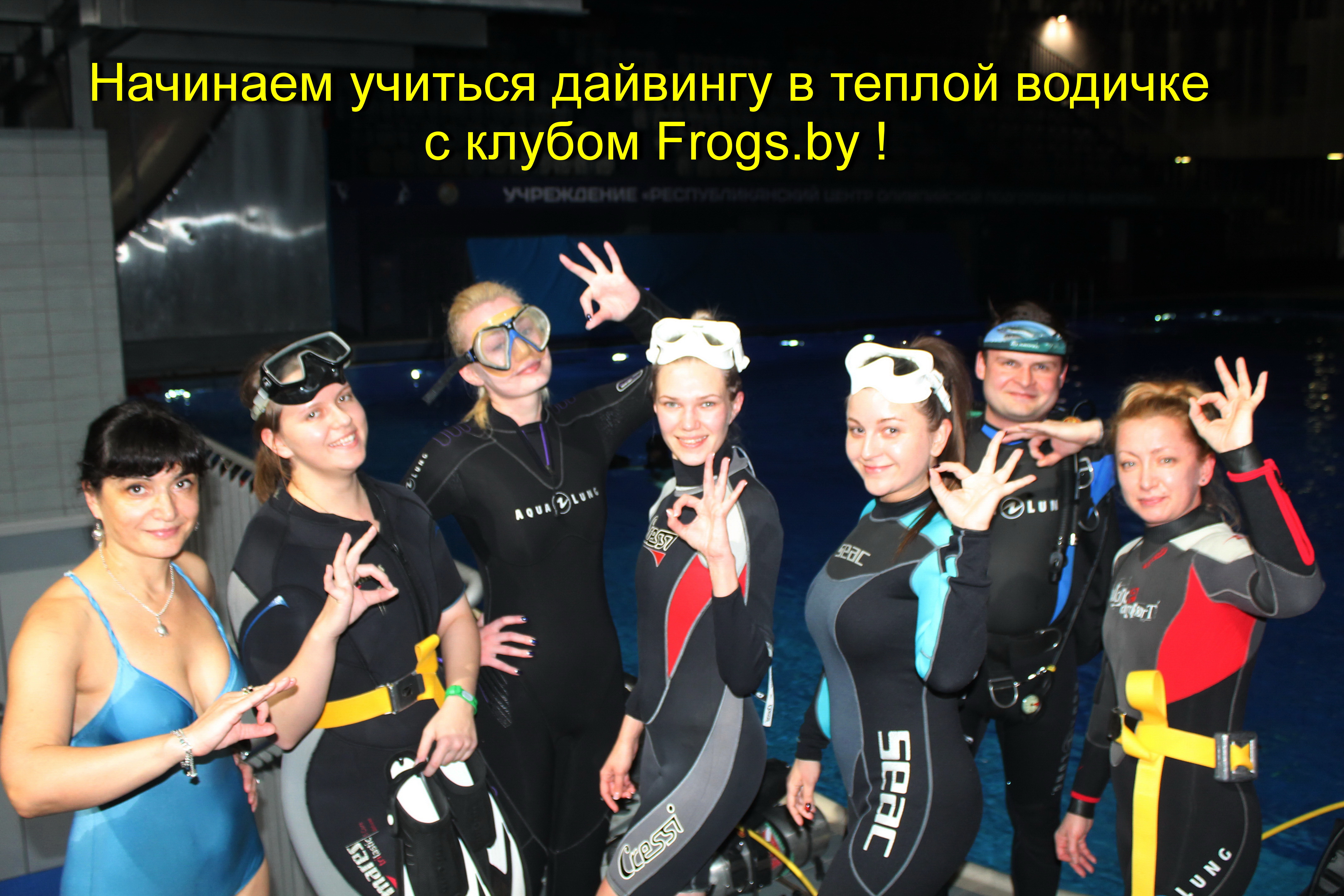 - База клуба "Frogs.by" расположена в спортивно-оздоровительном комплексе "Фристайл" города Минска, где осуществляется обучение дайвингу от начального до профессионального уровня по международным системам с выдачей бессрочного сертификата дайвера и диплома об успешном окончании обучения, а также проводятся пробные погружения с аквалангом для всех желающих