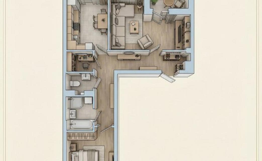 - Умная планировка: Три изолированные комнаты, раздельный санузел, просторная кухня. Идеальный баланс между общим пространством и личной территорией для каждого.