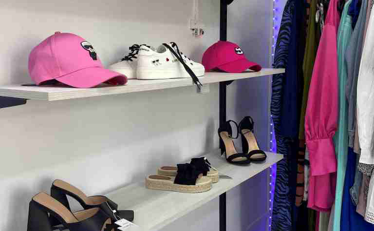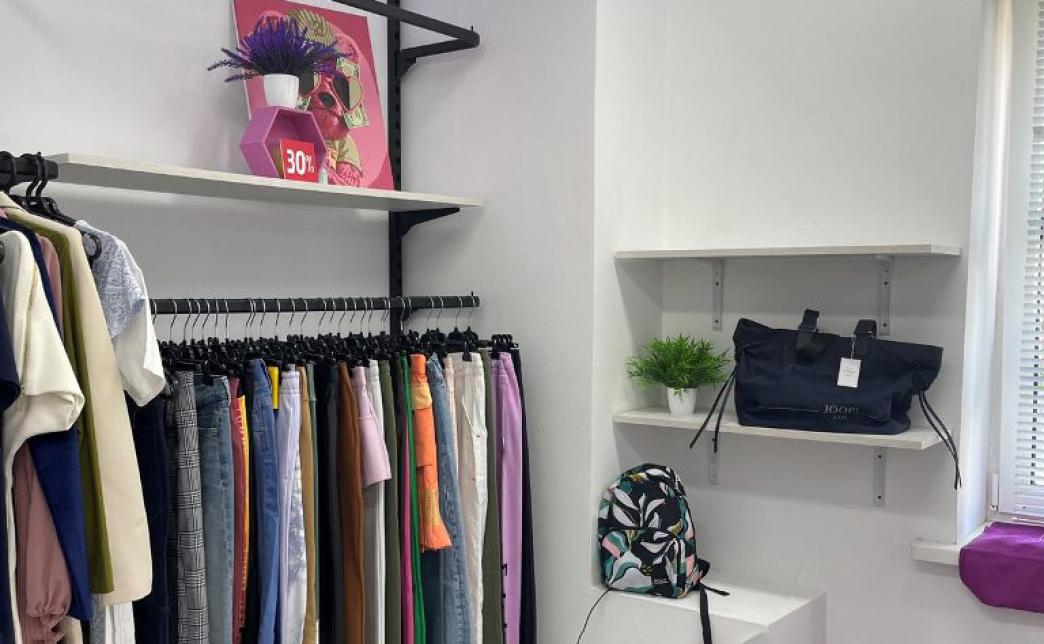 ресепшен, стул офисный, система видеонаблюдения, 2 оборудованные примерочные, 2 пуфика, зеркало с подсветкой, неоновая подсветка, переносной рейл (1), настенные крепления-конструктор (позволяющие менять расположение товара и внешнюю обстановку в магазине без особых усилий), отпариватель для одежды, полки для размещения на настенных креплениях, рекламные стяжки для размещения на улице.