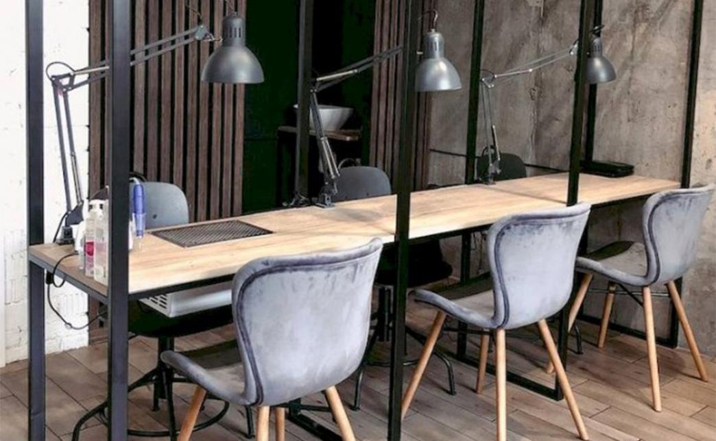 Рабочие места для маникюра оборудованы встроенными вытяжками. В помещении проведена вода, имеется раковина: