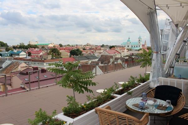 - на этаже выше, на крыше ТД "Неман", расположена единственная в городе смотровая площадка и на ней располагается летний видовый ресторан "Крыша Мира". Площадь ресторана 280 м². 100 посадочных мест