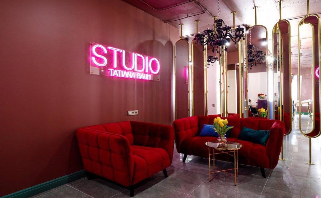 - Конструкции и мебель в салоне была выполнена на заказ с учетом последних дизайнерских трендов. Проект продуман дизайнерами, мебель удобна в использовании и в работе. В салоне много зеркал, а так же фишкой декора являются розовые стеклоблоки