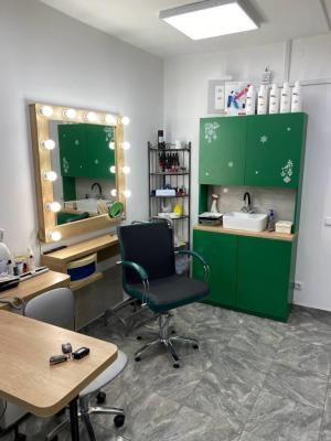 Салон находится на 1-м этаже жилого дома. Вход - отдельный. Презентабельная и видная вывеска. Своя парковка. Сделан красивый декор интерьера. Отличная уютная обстановка: обустроены отдельная зона для ожидания клиентов, зона ресепшен, и комната отдыха для мастеров. Аренда по 8$ за 1 м2. Доступ в помещение 24/7.