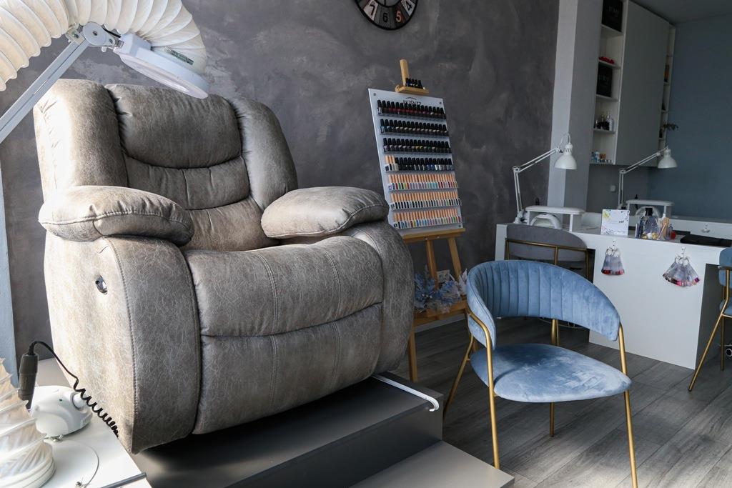 - салон оборудован дорогим и новейшим оборудованием в сфере ногтевого сервиса, специально спроектированными столами, бесшумными встроенными пылесосами, максимально комфортным педикюрным электрическим креслом-реклайнером