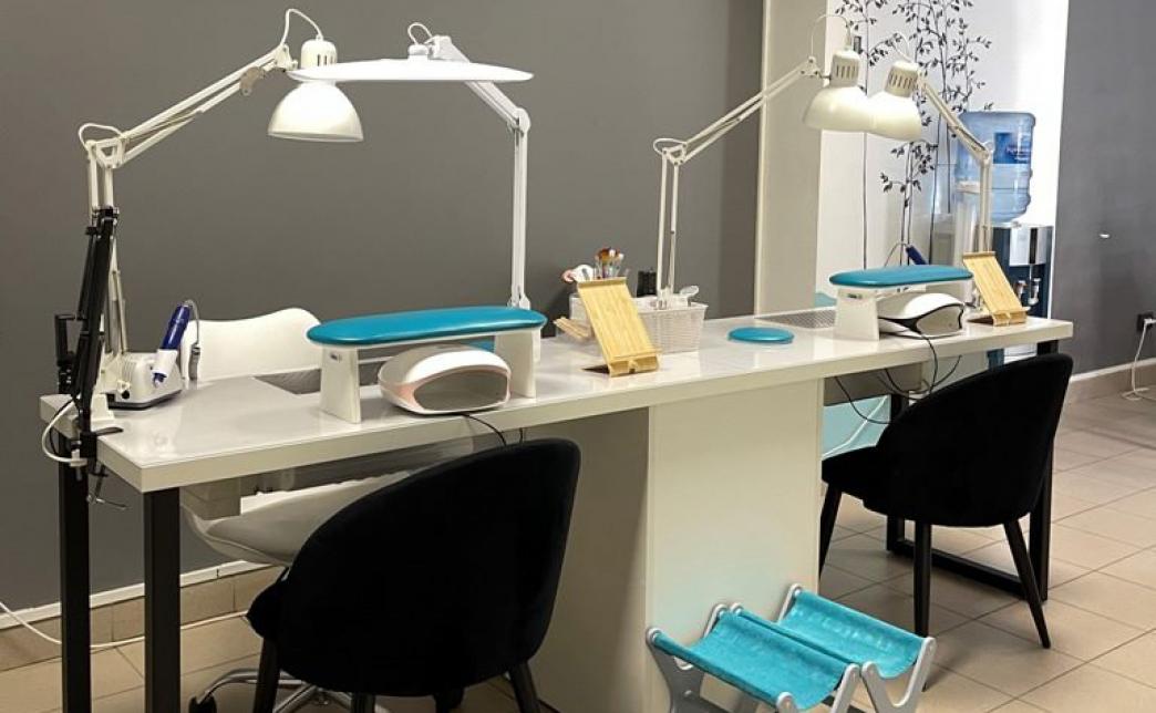 - 4 полностью оборудованных и полностью обновленных в сентябре 2023 стола маникюра + кресло реклайнер, с возможностью подготовить место для услуги в 4 руки