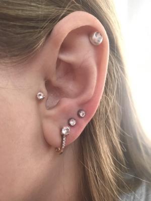 Зоны пирсинга: мочки, хрящи, козелок, септум, пуп, нос, исправление прокола.