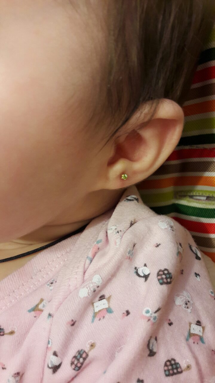 Процедура проходит с обязательной обработкой инструментов, серег и кожи антисептиком и занимает считанные секунды.