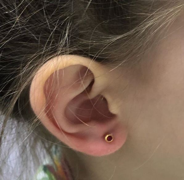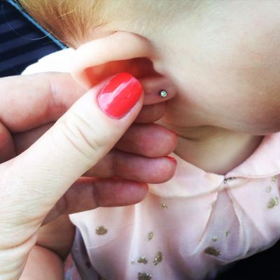 Инструмент очень легкий, практически не напоминает "пистолет", прокол происходит бесшумно и безболезненно. Отпадает необходимость "фиксировать" ребенка. Все эти факторы позволяют безо всяких проблем прокалывать уши детям.