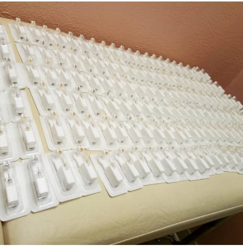 Картридж с серьгой-иглой сконструирован так, что ни серьга-игла, ни застежка не имеют контакта с инструментом.