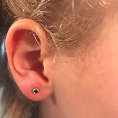 Застежка серьги-иглы закрывается так, что полностью исключается "зажим" мочки уха Рана получается колотой, а разрывы исключены. Это означает, что процесс заживления происходит без проблем.