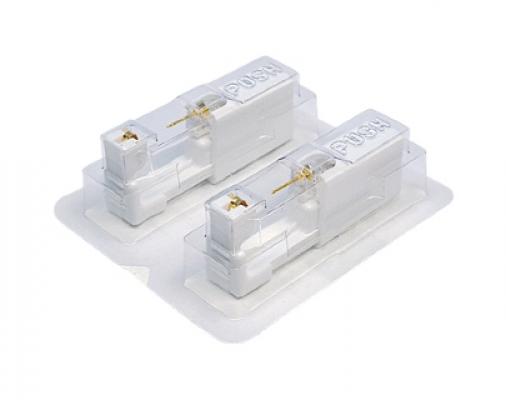 Картридж с серьгой-иглой сконструирован так, что ни серьга-игла, ни застежка не имеют контакта с инструментом.
