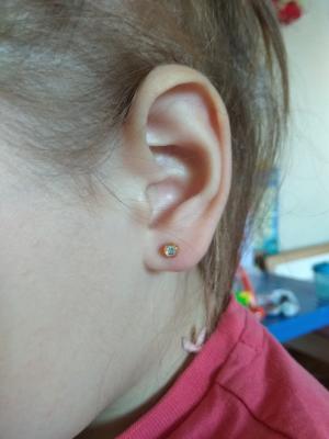 Игловая часть серьги-иглы имеет диаметр 0,9 мм и специальную заточку. Все это обеспечивает значительное сокращение болевых ощущений до полного их отсутствия. Дети больше не боятся.