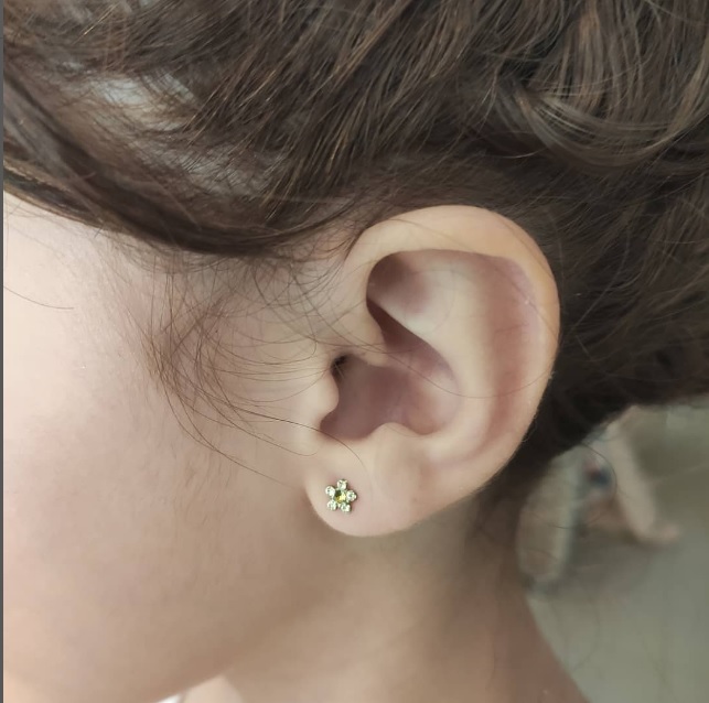 Застежка серьги-иглы закрывается так, что полностью исключается "зажим" мочки уха Рана получается колотой, а разрывы исключены. Это означает, что процесс заживления происходит без проблем.