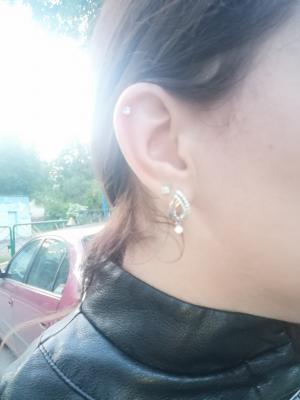 Застежка серьги-иглы закрывается так, что полностью исключается "зажим" мочки уха. Рана получается колотой, а разрывы исключены. Это означает, что процесс заживления происходит без проблем.