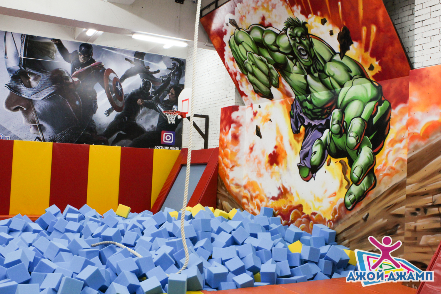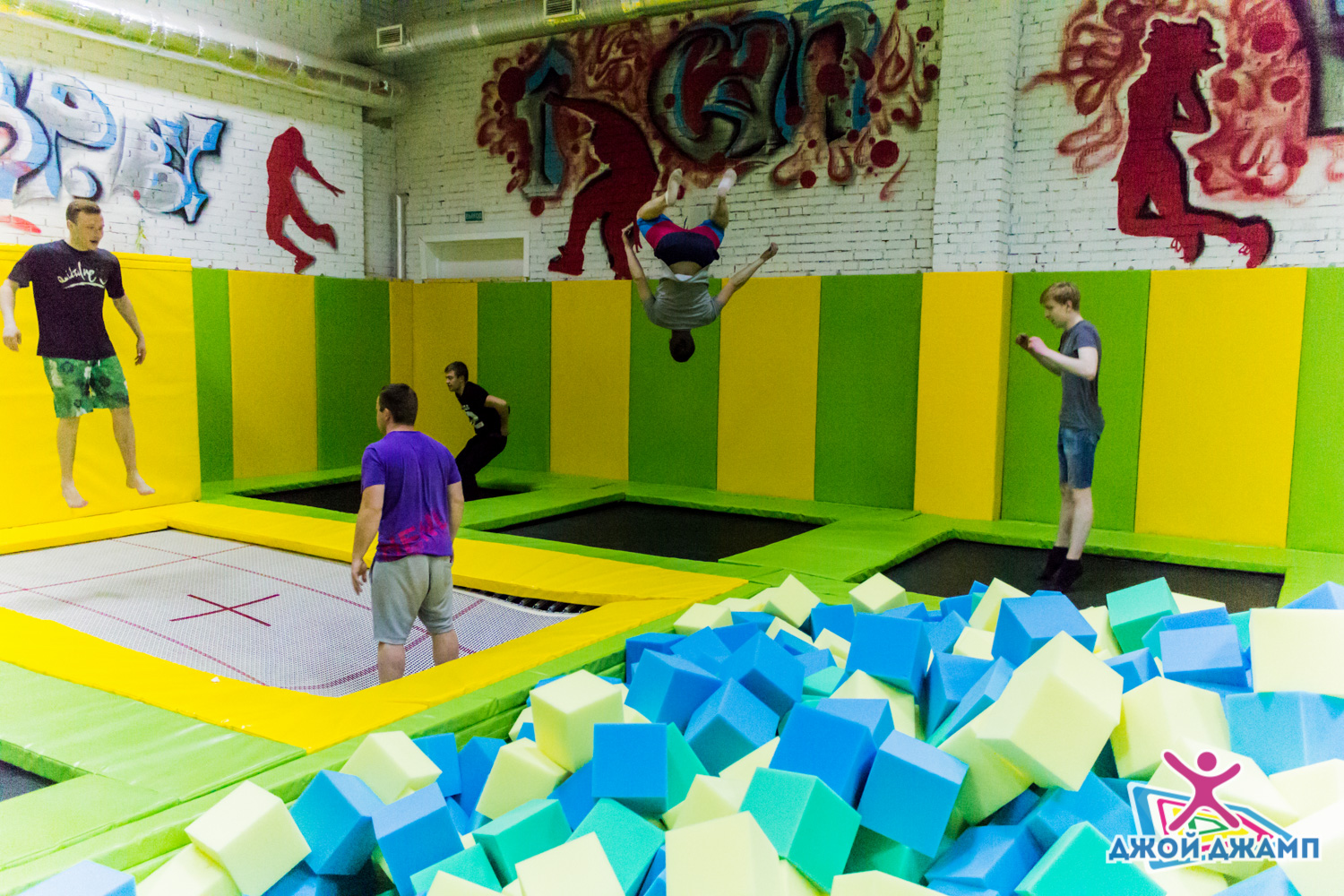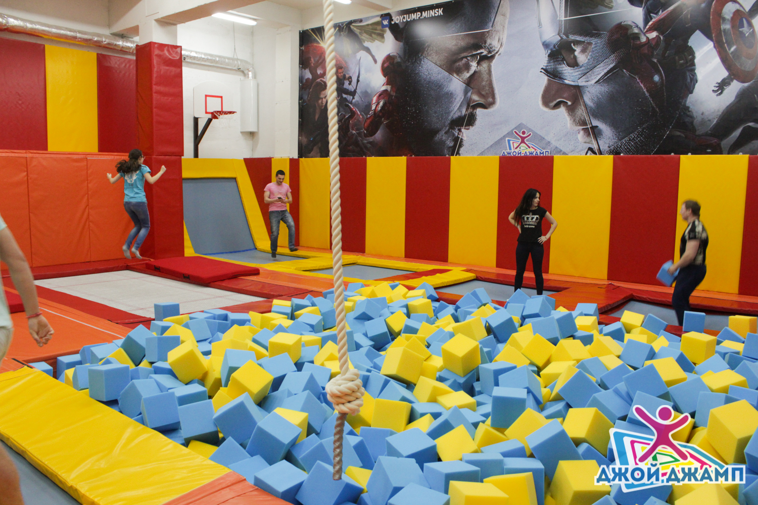 31 батут, 2 поролоновых ямы, воздушная подушка, 3 тарзанки, 2 скалодрома от 5 р/час в мире "Джой Джамп"