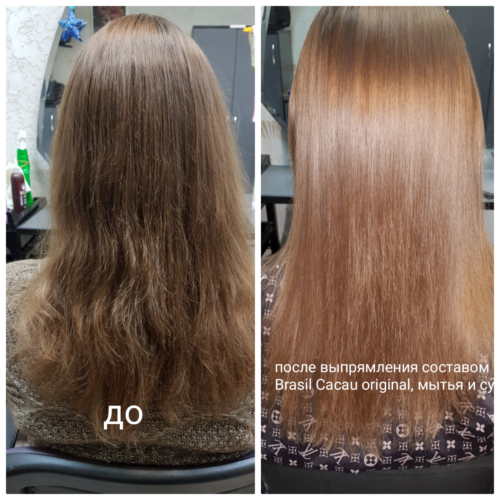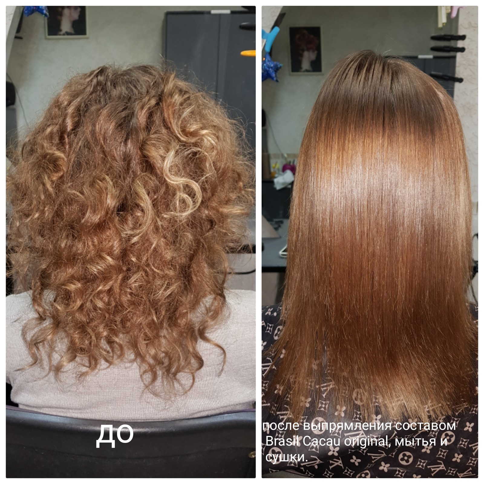 Можно красить волосы в один день с процедурой выпрямления, но окраска должна быть первой.