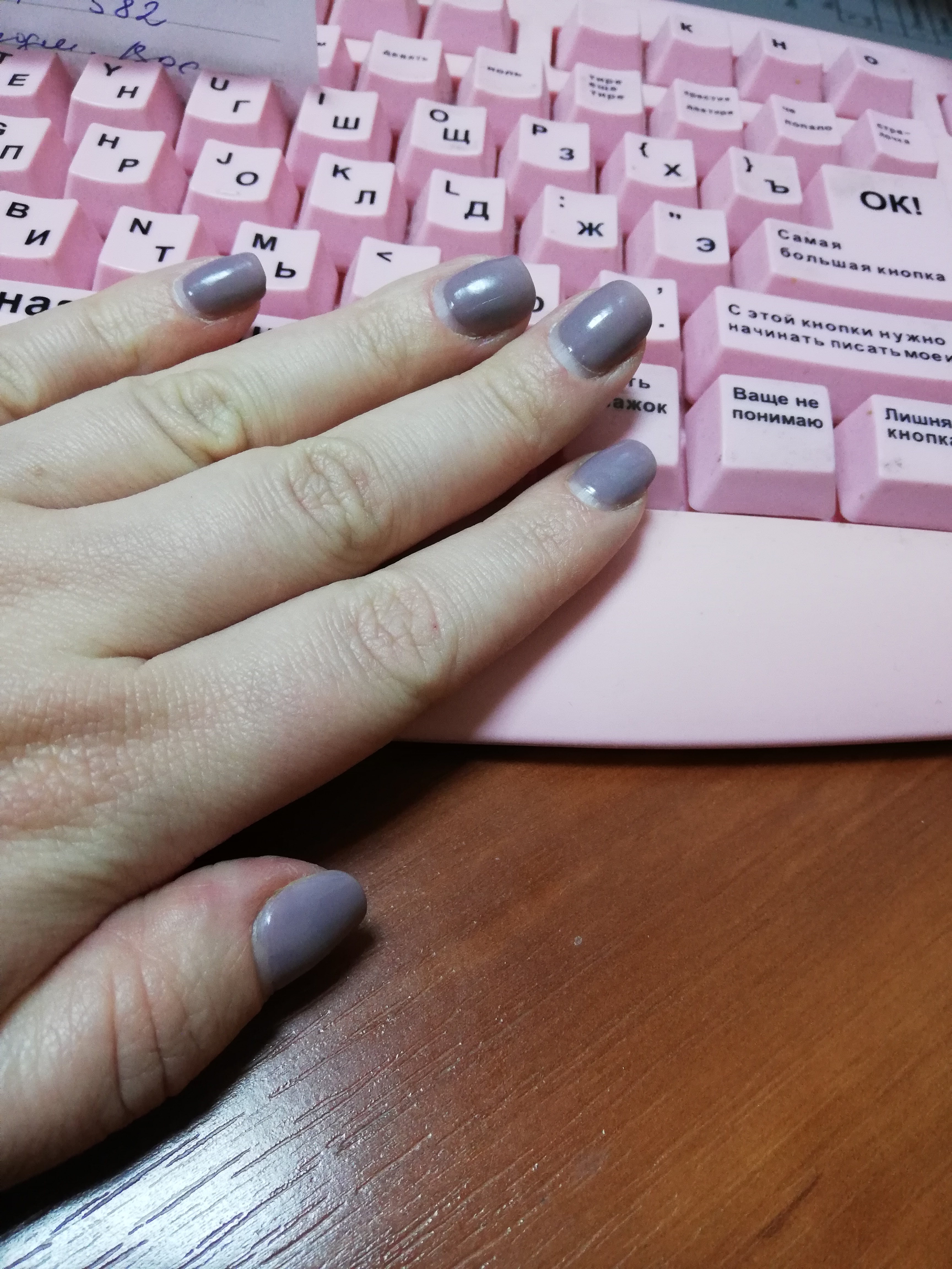 Ничего не отслаивается, не отваливается. Мастер Татьяна, рыженькая. За такую цену довольна. Я вообще довольна, на моих ногтях все отваливается моментом, и кутикула лохматая, хоть мажь, хоть режь.