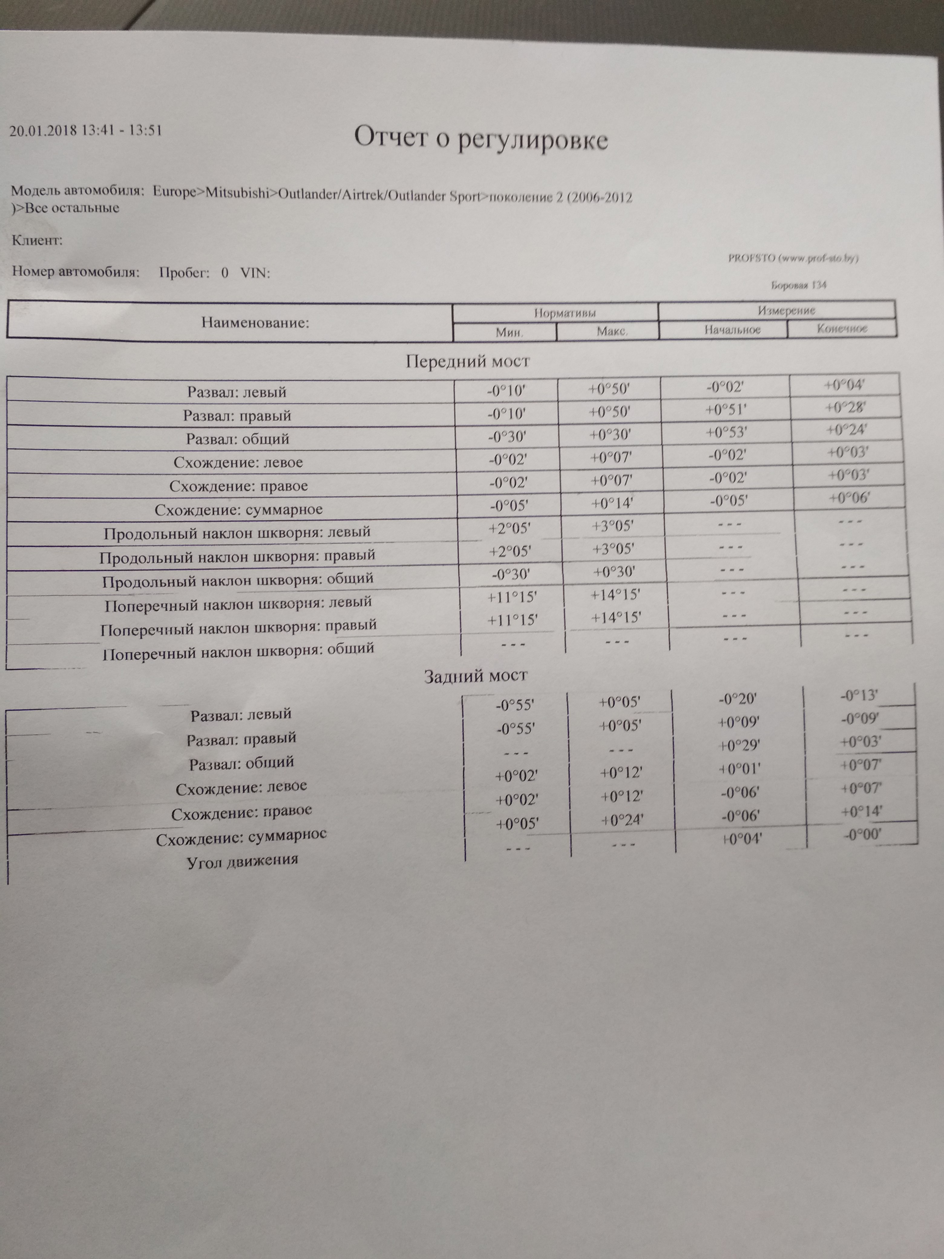 - углы развала (для автомобилей где предусмотрена и требуется регулировка):