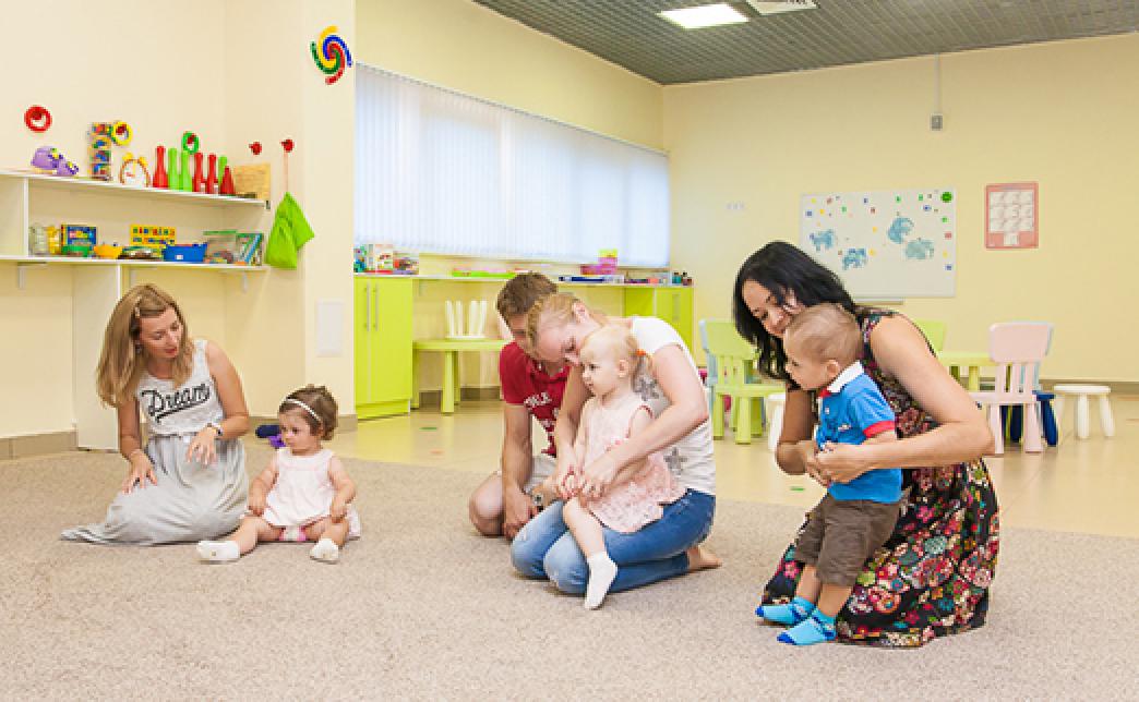 В группах "Развивайка" занимаются малыши вместе с мамами, это связано с тем, что с маминой помощью эффективность занятий для ребенка возрастает в несколько раз, не говоря о том, что в этом возрасте дети не любят выпускать маму из виду.