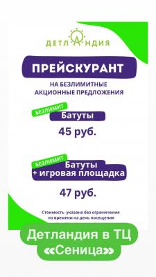 - Промокод дает право на скидку до 50% на безлимитные пакеты в развлекательном центре "Детландия"