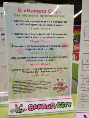 "Banana City" - это город вечного детского праздника и безудержного веселья. Здесь представлено много развлечений для детей от 1 года до 12 лет. Каждый из них может найти занятие по своему вкусу и возрасту. Это место, в котором дети, развлекаясь, получают огромный заряд положительных эмоций, энергии и максимум удовольствия. Главное – это здоровое физическое и творческое развитие ребенка.