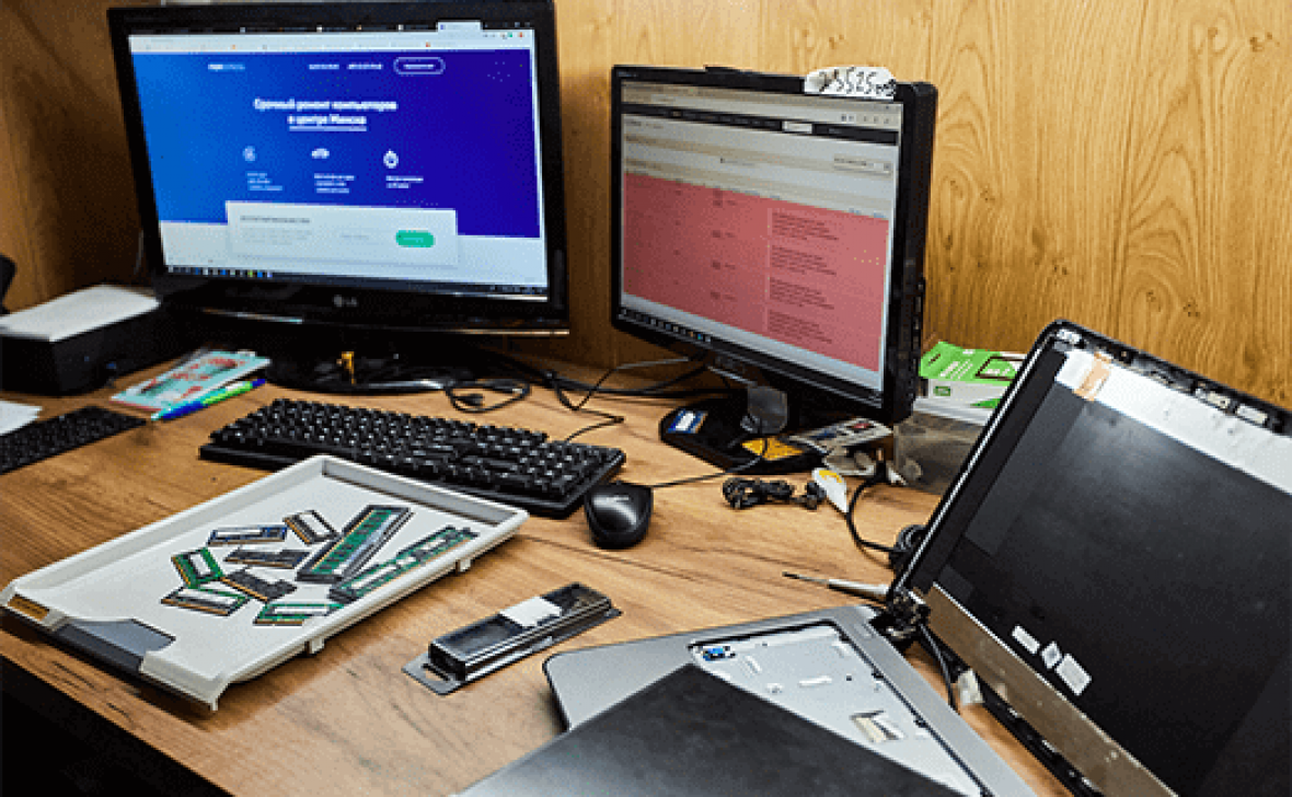 - Специалист нашей компании выполнит работы (ремонт компьютера, ноутбука, монитора, системного блока) у нас в офисе