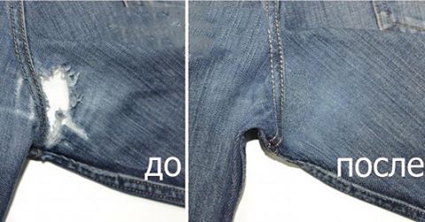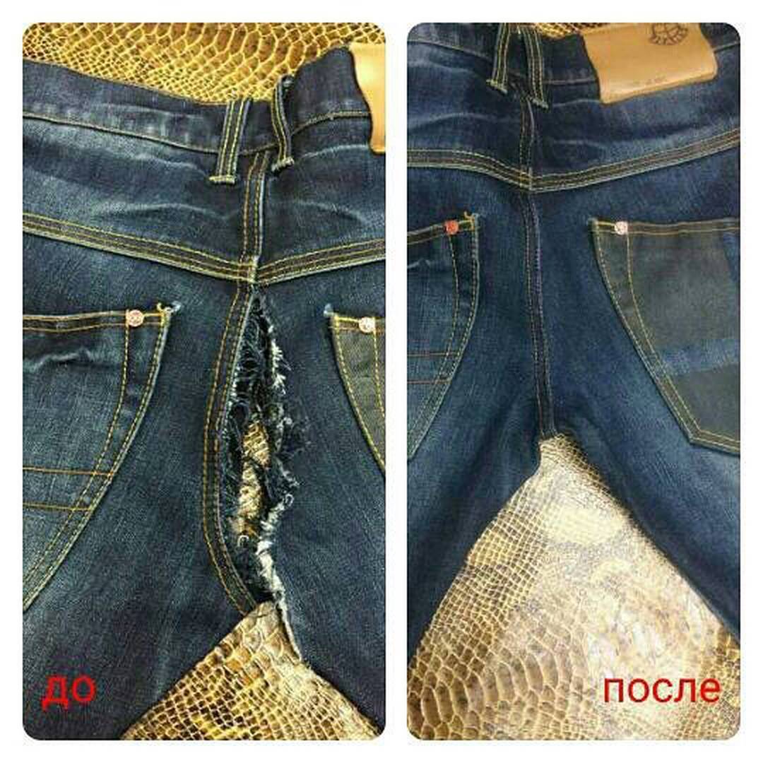 - восстановление (штопка, вставка латок под цвет и вид ткани, замена элемента одежды и др.)