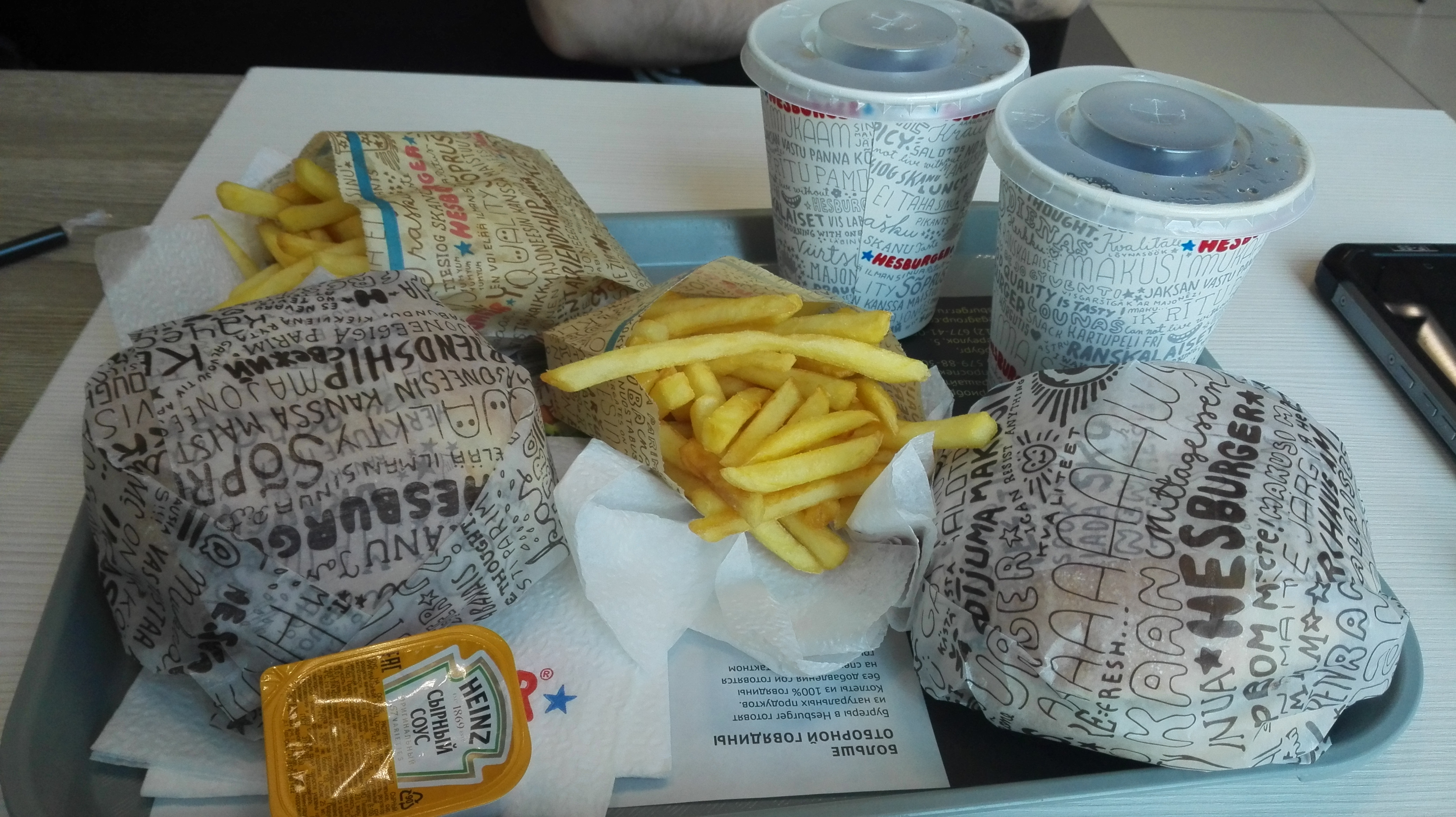 - Промокод дает право на скидку 50% на комплексные обеды 2 по цене одного в "Hesburger".