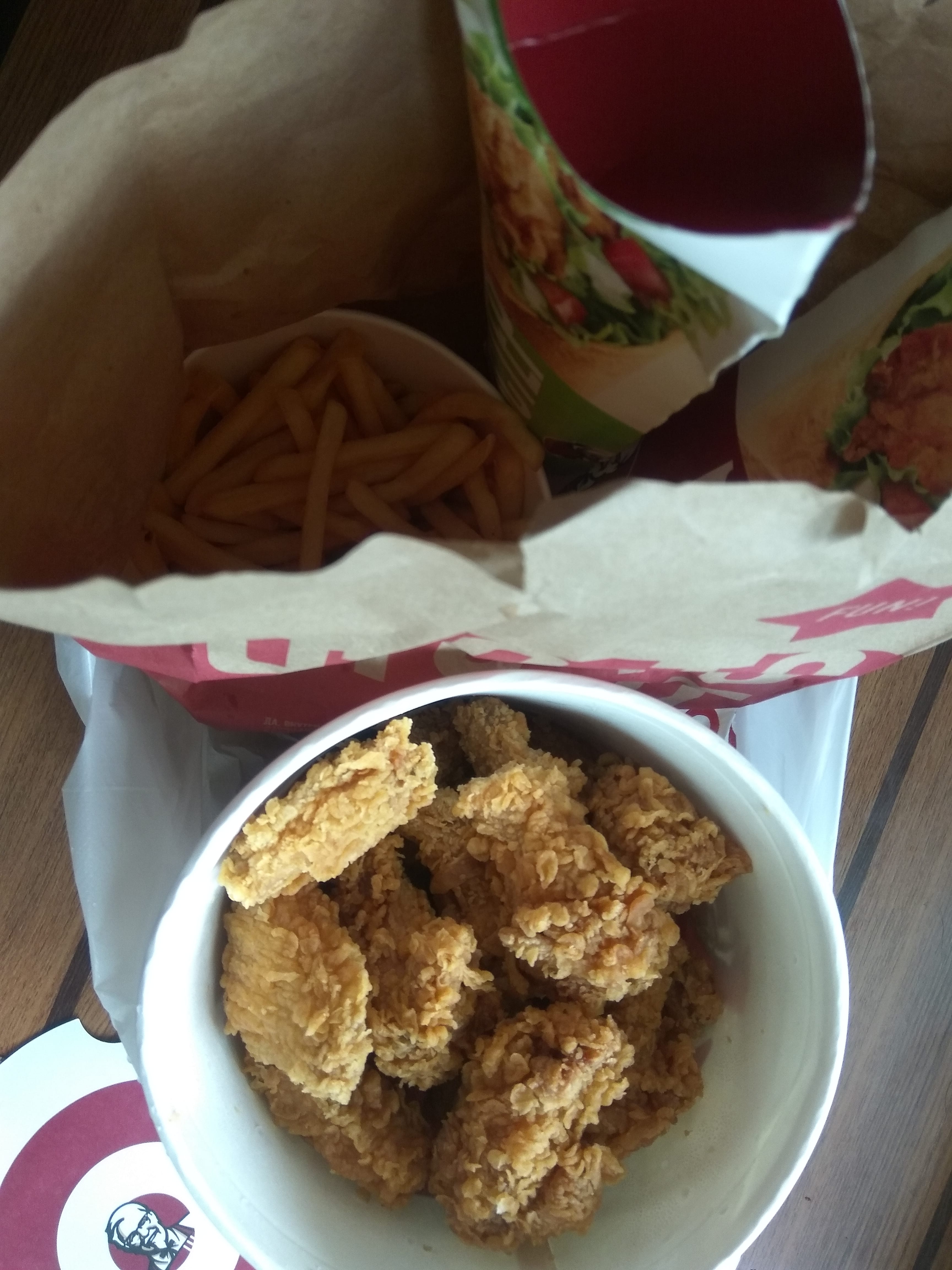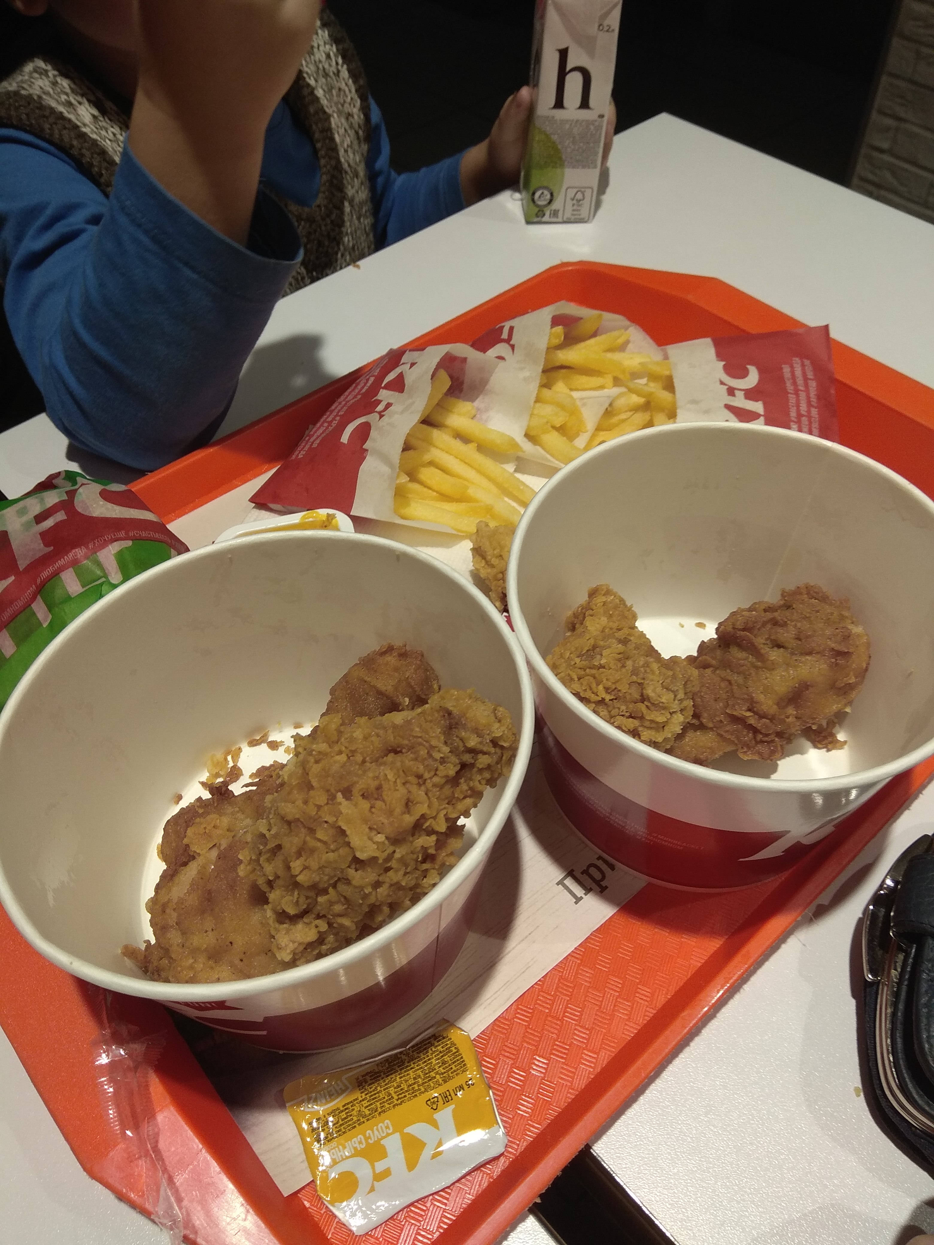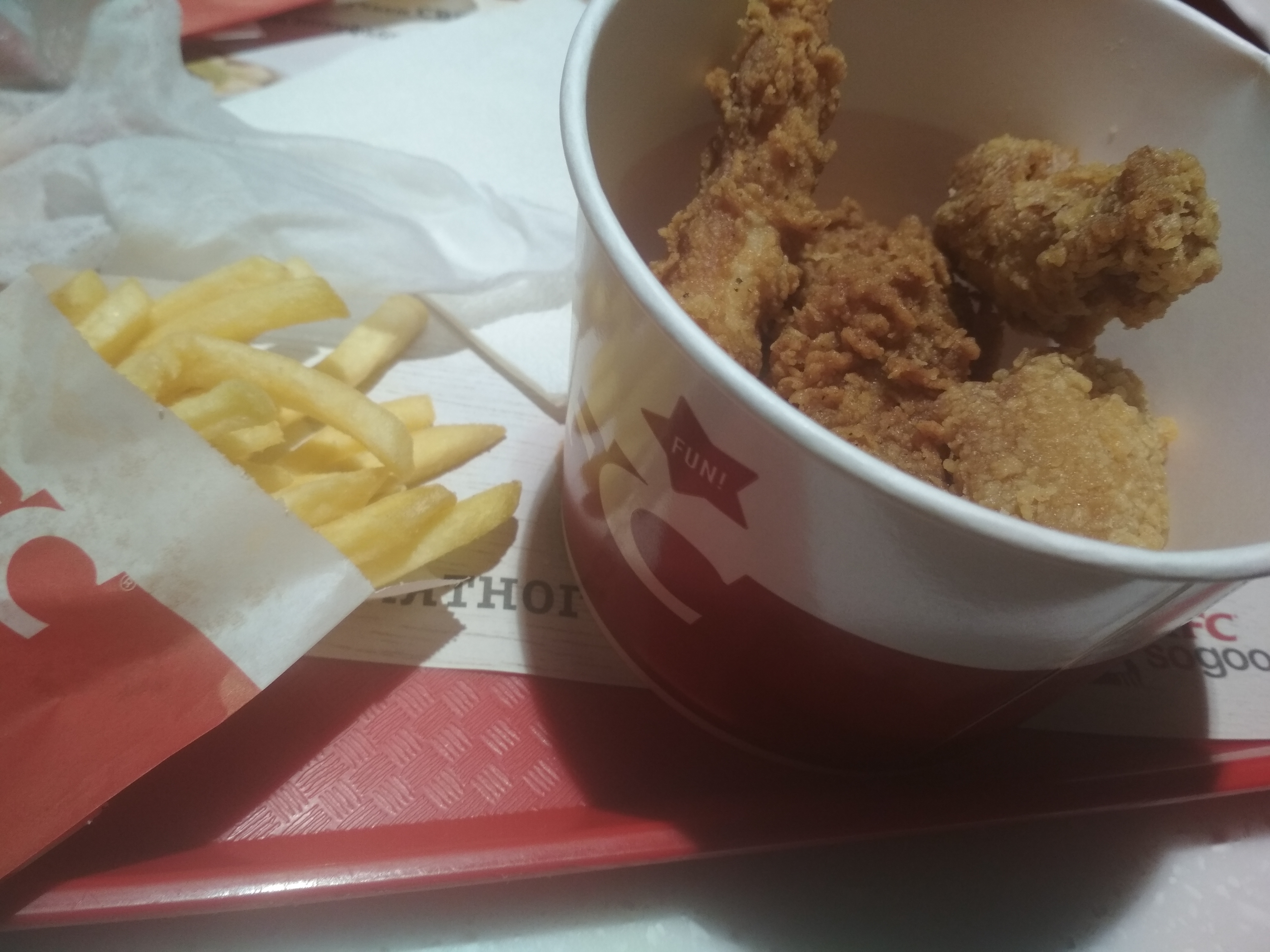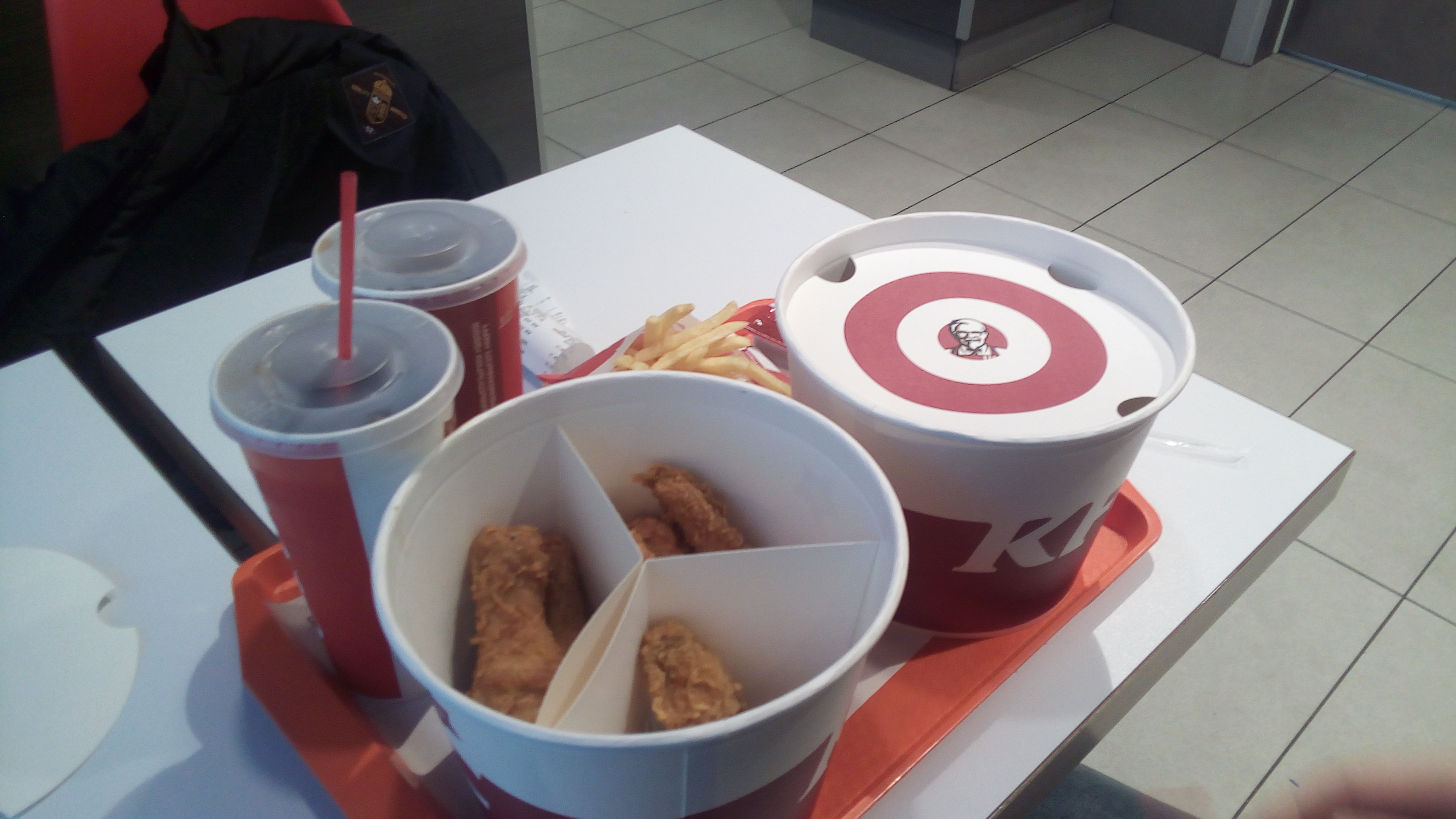 Приобретаю я, значит, промокод, сохраняю купон на телефон и иду за своими двумя баскетами, надеясь купить его без приключений. Прихожу в ресторан (который слегка переполнен, конечно, но с Маком на Октябрьской не сравнится). Мужественно отстаиваю свою очередь, подхожу к кассе и показываю кассиру купон. Кассир пару секунд смотрит в ступоре, потом выдаёт: "КРУТО. А МОЖЕТЕ НА САЙТЕ ПОКАЗАТЬ?" Слегка удивляюсь, потому что сайтом пользуюсь давно, и во всех уважающих себя заведениях достаточно было просто ПРОДИКТОВАТЬ кассиру свой промокод, который он вычёркивал из листика, к тому же в условиях на сайте о таком сюрпризе ничего сказано не было. Зарядка практически на нуле, кушать хочется, пароль от личного кабинета записан дома. Звоню семье, присылают мне скриншот сайта, немного не понимая, что происходит.  Отстаиваю очередь второй раз, подхожу к кассиру, показываю скриншот сайта, надеясь уже наконец получить свои баскеты, потому что желудок был готов переварить сам себя. Кассир снова пару часов в ступоре и говорит: "НУ ЛАААДНО, В ЭТОТ РАЗ ПРОДАМ, НО В СЛЕДУЮЩИЙ РАЗ ВЫ ДОЛЖНЫ ПОДТВЕРДИТЬ, ЧТО ЭТО ИМЕННО ВАШ ПРОМОКОД, ПОКАЗАВ ЕГО МНЕ НА САЙТЕ". Достаточно странная система, ведь было бы интересно посмотреть на его реакцию, если бы к нему пришли с РАСПЕЧАТАННЫМ на листочке купоном и с Нокиа 2001 года без выхода в интернет. Спасибо хоть, что "ДЛЯ ПОДТВЕРЖДЕНИЯ" вдобавок не потребовал показать паспорт, водительское удостоверение, аттестат за 11 классов и справку о состоянии здоровья формы 10-здр/у.