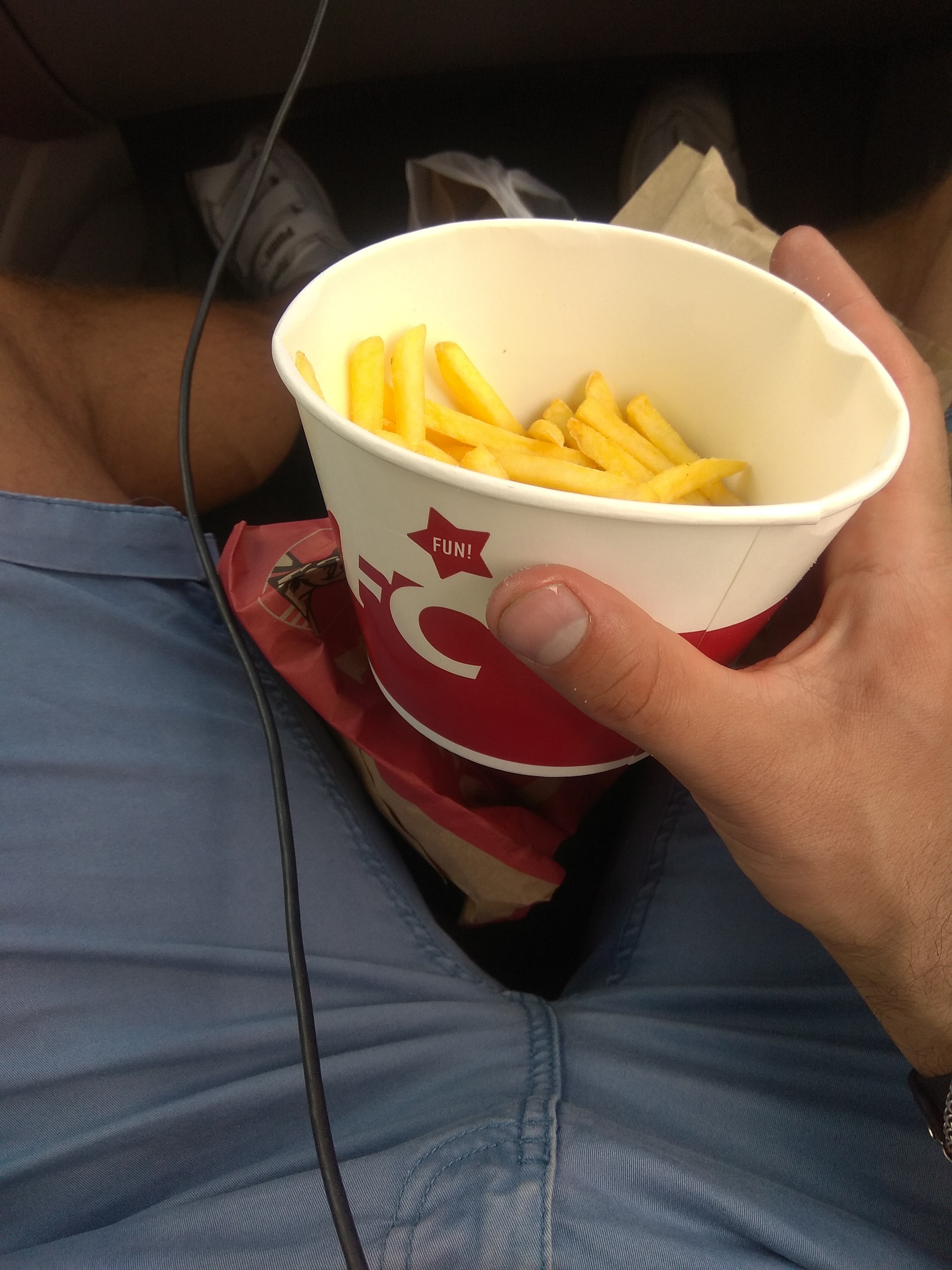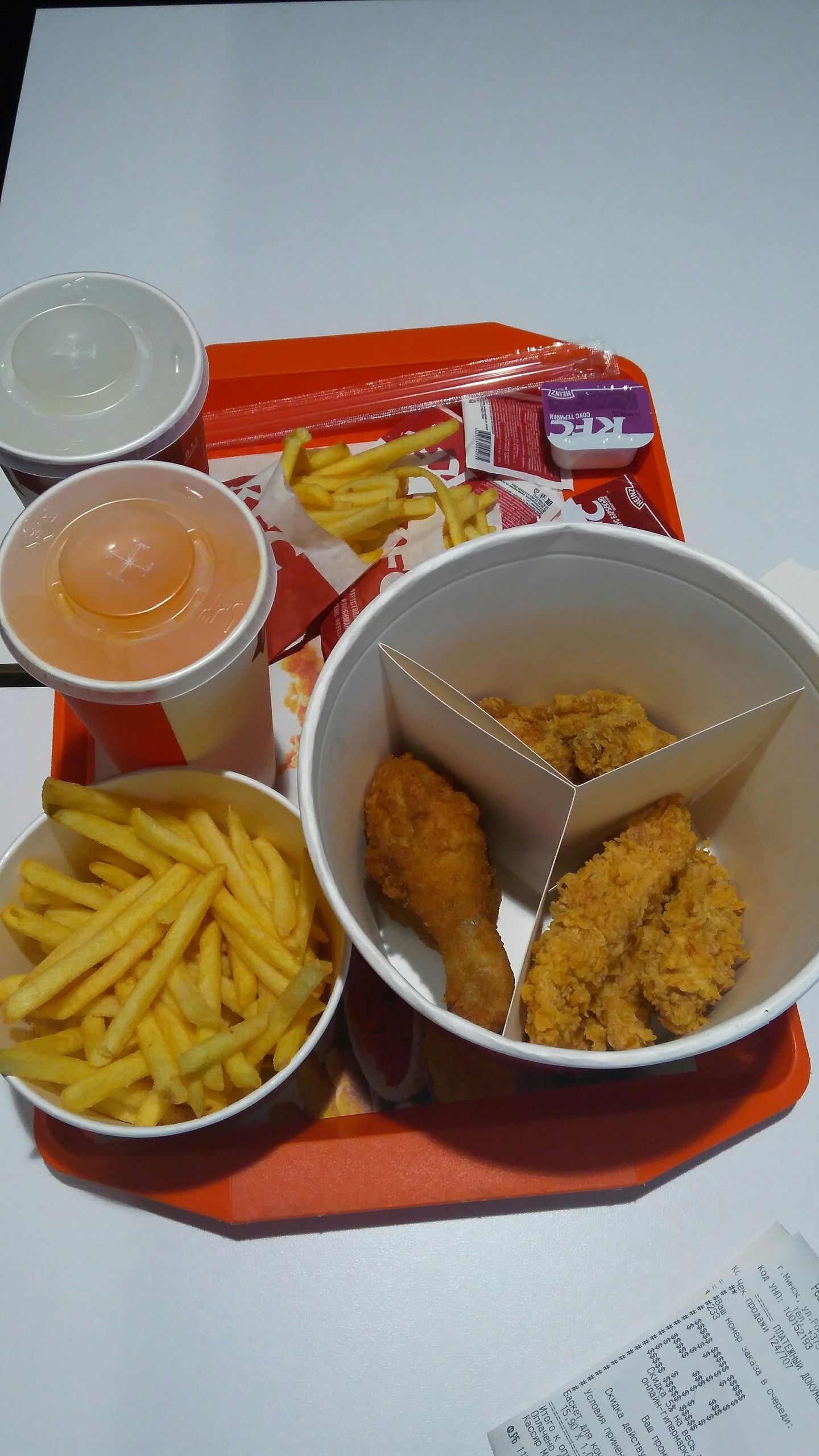 Брали сет 1 в кафе на Романовской Слободе в пятницу 29.06. Стрипсы и крылья были жутко соленые. Словно панировку сделали неправильную. Стрипсы еще ко всему были острые, вместо оригинальных. Но вот это, кстати, почти всегда, редко, когда попадались именно оригинальные, всегда перца много. Если б это был сет 25 крыльев, то 100% вернули бы. С этим с горем пополам справились, но отбило охоту еще раз идти, потому что с каждым разом таких косяков все больше. Фри в этот раз тоже была мягкая, повезло только с кофе)))