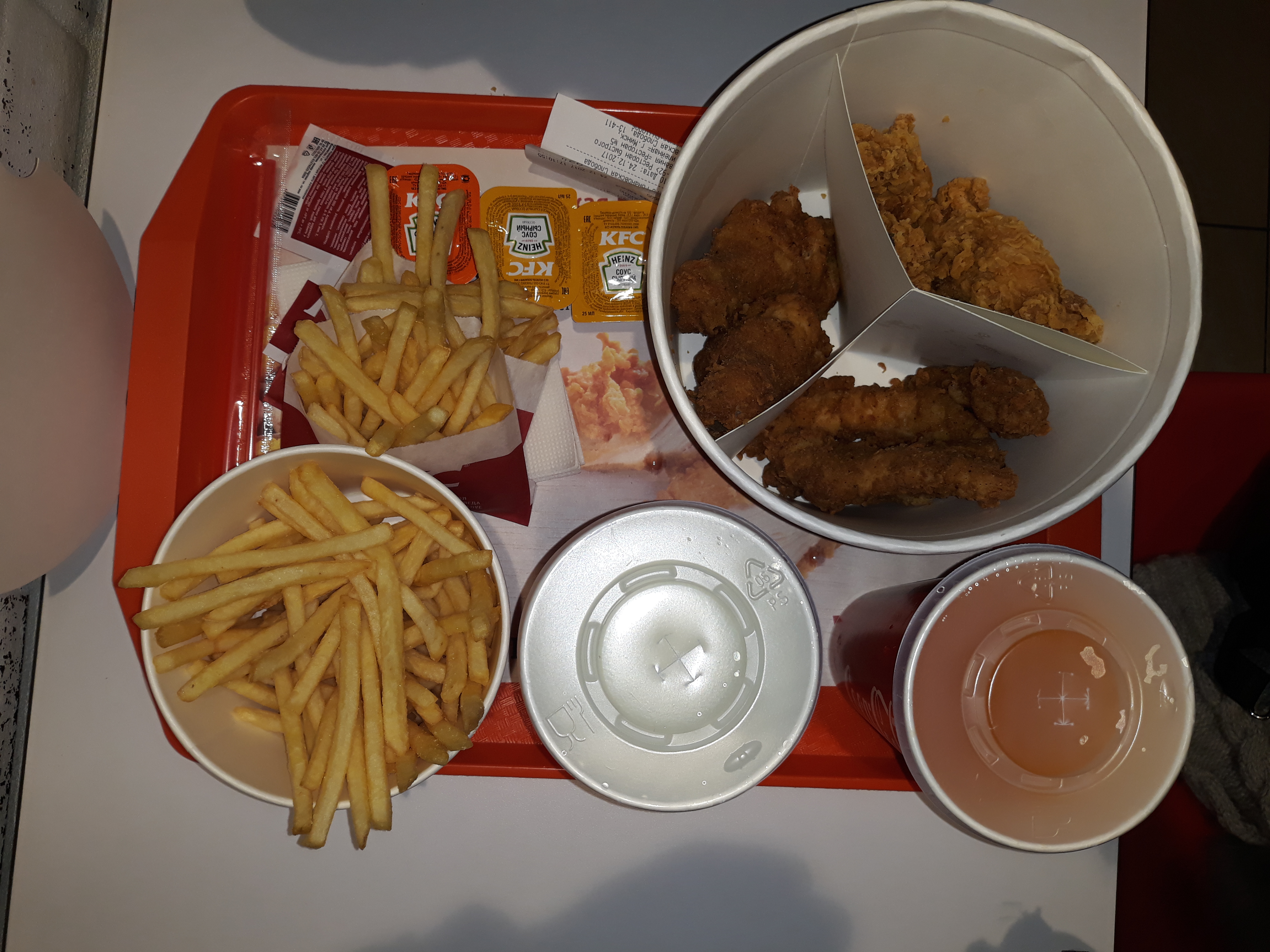 Крылышки как всегда вкусные. А вот картошка ужасная: размоченная, недожаренная и несоленная. Сильно испортилась по сравнению с тем, то было раньше. Такую тенденцию заметила во многих KFC.