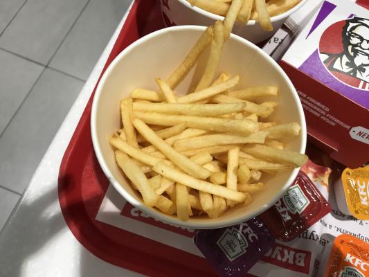 Все гуд,вот только мне кажется,что картофеля немного недоложили(прилагаю фото нетронутого заказа),связано ли это со сливками,или просто такая подача,не знаю)были в кфс возле комаровки