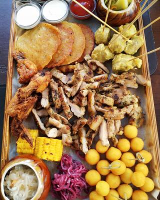 Честно, я очень расстроилась... Сет мясной ещё можно съесть, если очень голодный. А вот рыбный, это ужас!!! Рыба в панировке сухая с неприятным запахом. Всё холодное, жирное, жарили в прогорклом масле. Безвкусное, ни приправ ни соли... Овощи на гриле, гриль только в названии... Что не противно было есть, так это картофельные шарики и сметану. И подача была интересной. Не ожидала, испорчен вечер и настроение...