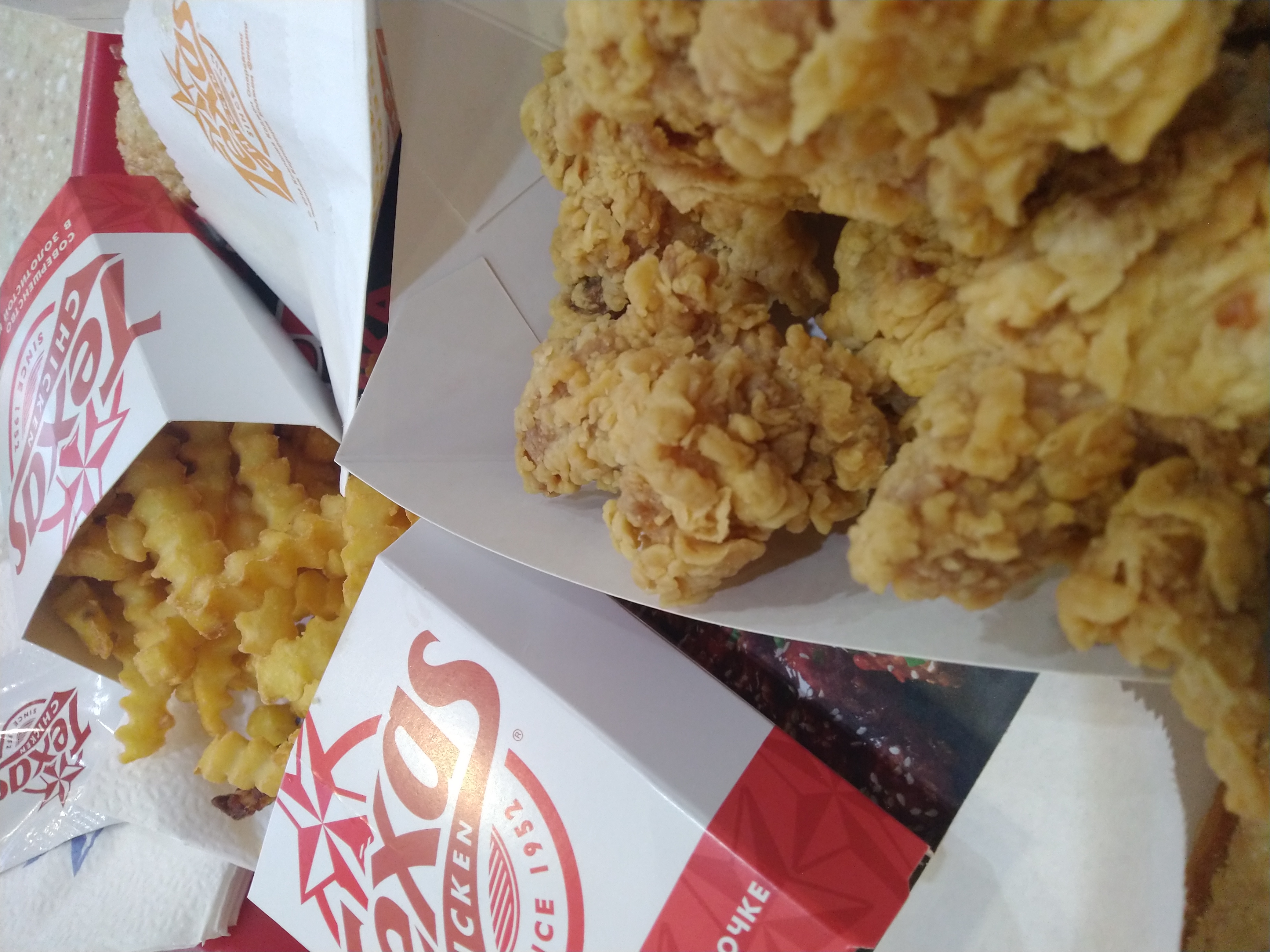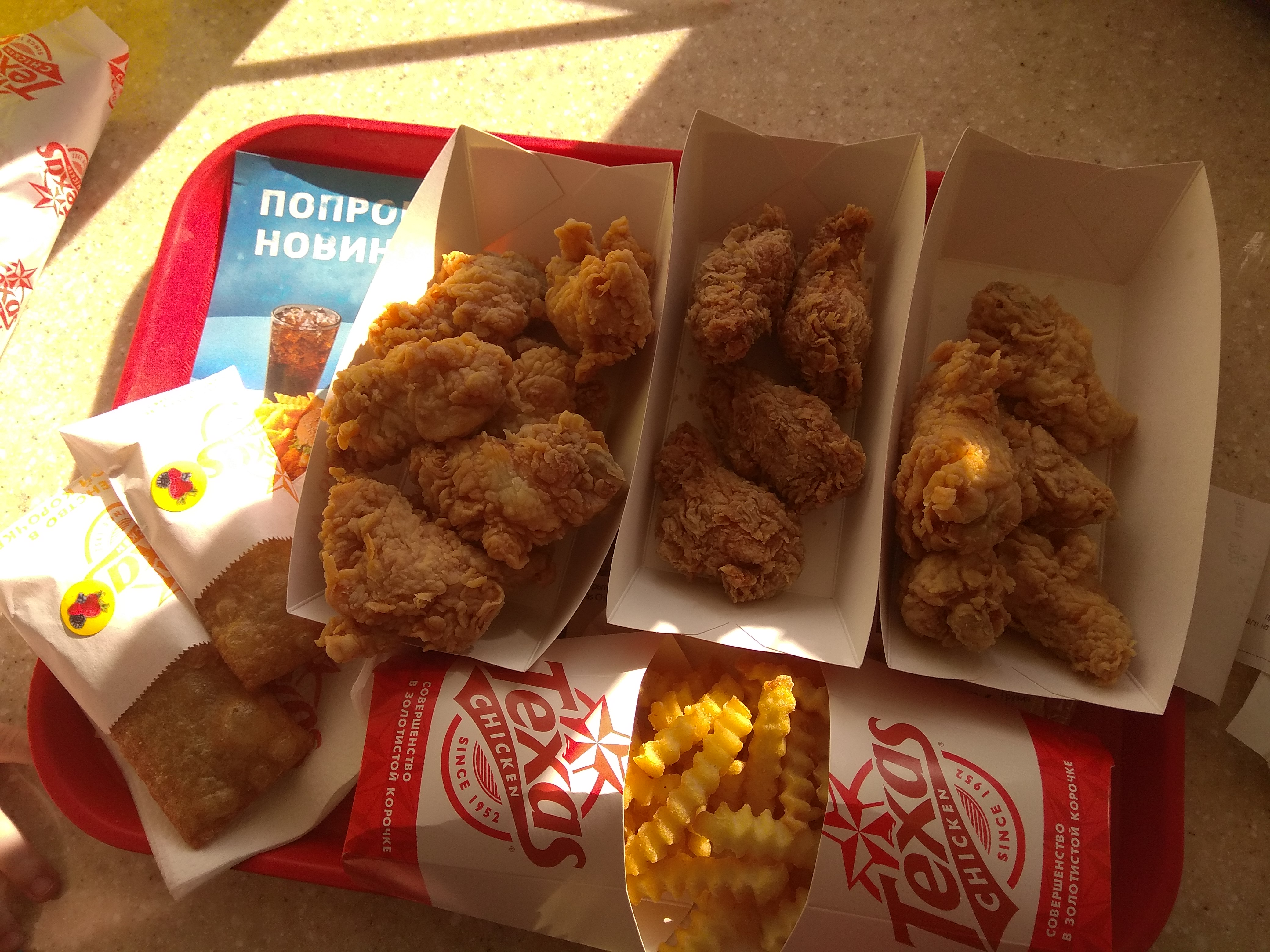 Техас Чикен один из самых лучших фаст-фудов. Мало того что очень вкусная курица, сочная, а не сухая как у некоторых похожих ресторанов.. Так еще и с точки зрения БЖУ, это самый лучший вариант сорваться, для тех кто на диете.