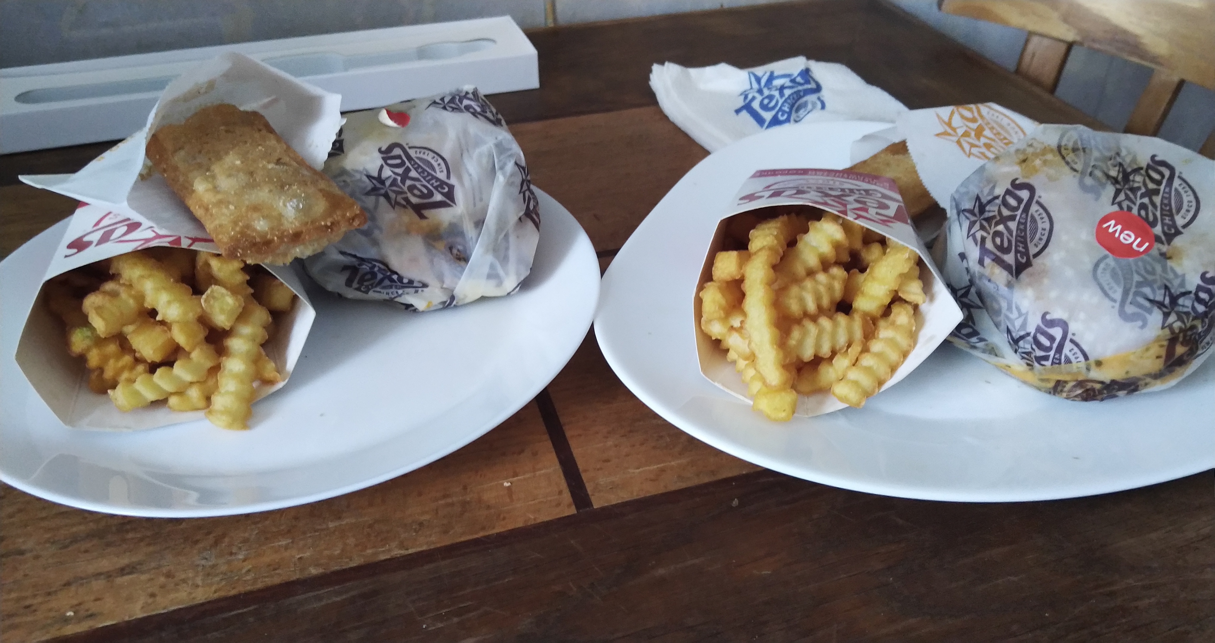 Ходили в Техас на Свердлова, приготовили быстро, ждали минут 5 где-то. Заказали сет с бургерами, оказался острым. Сеты на любителя, те кто любит острее, то им в самое то, те кто не очень любит, то это не для вас