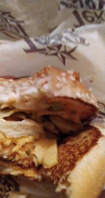 Сделала вывод что на каменной горке менее острые, чем на Свердлова, но на каменной горке сегодня дали полупустой бургер, половина бургера без начинки