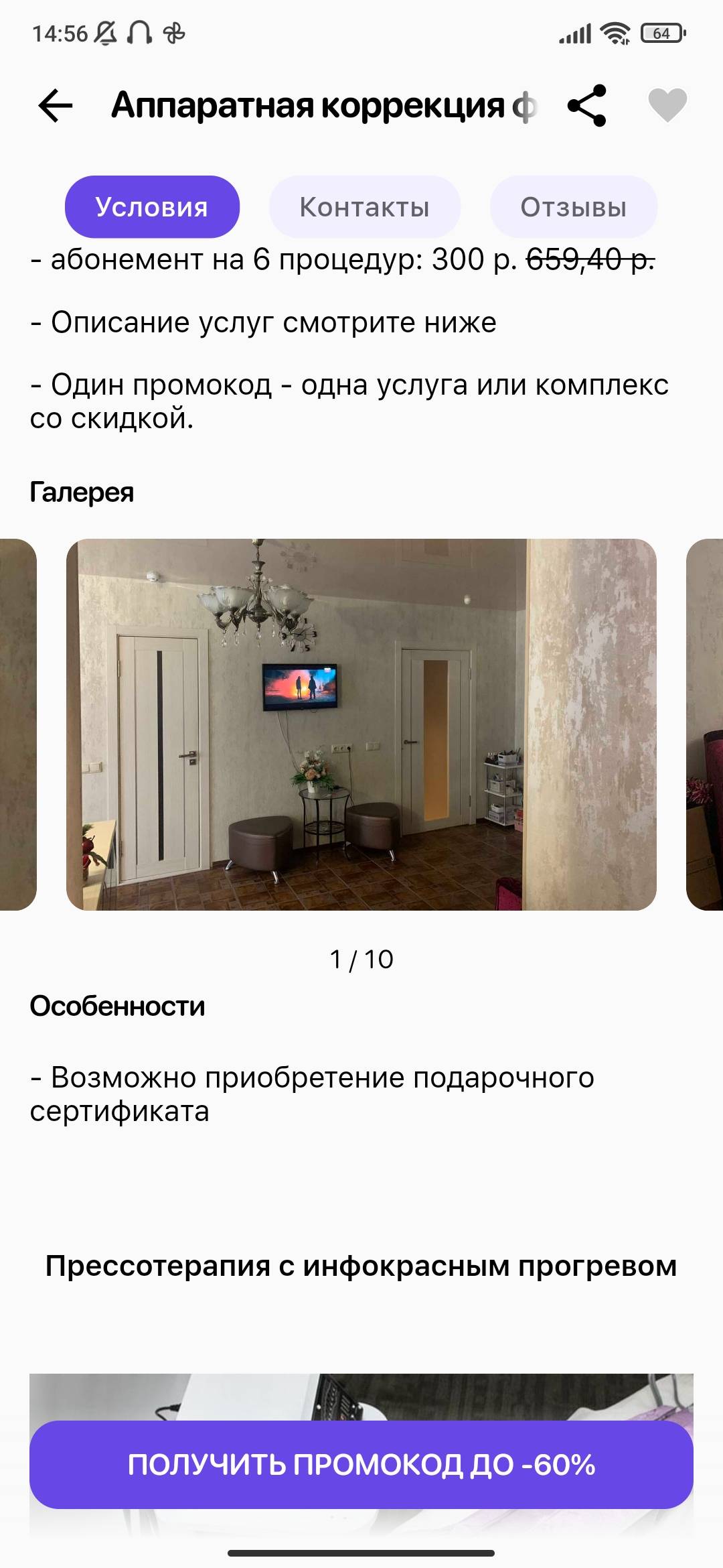 - Промокод дает право на скидку до 60% на RF-лифтинг тела и лица, комплексы, кавитацию в салоне красоты "LADY LOVE"