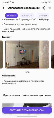 - абонемент на 6 процедур: 300 р. 659,40 р.