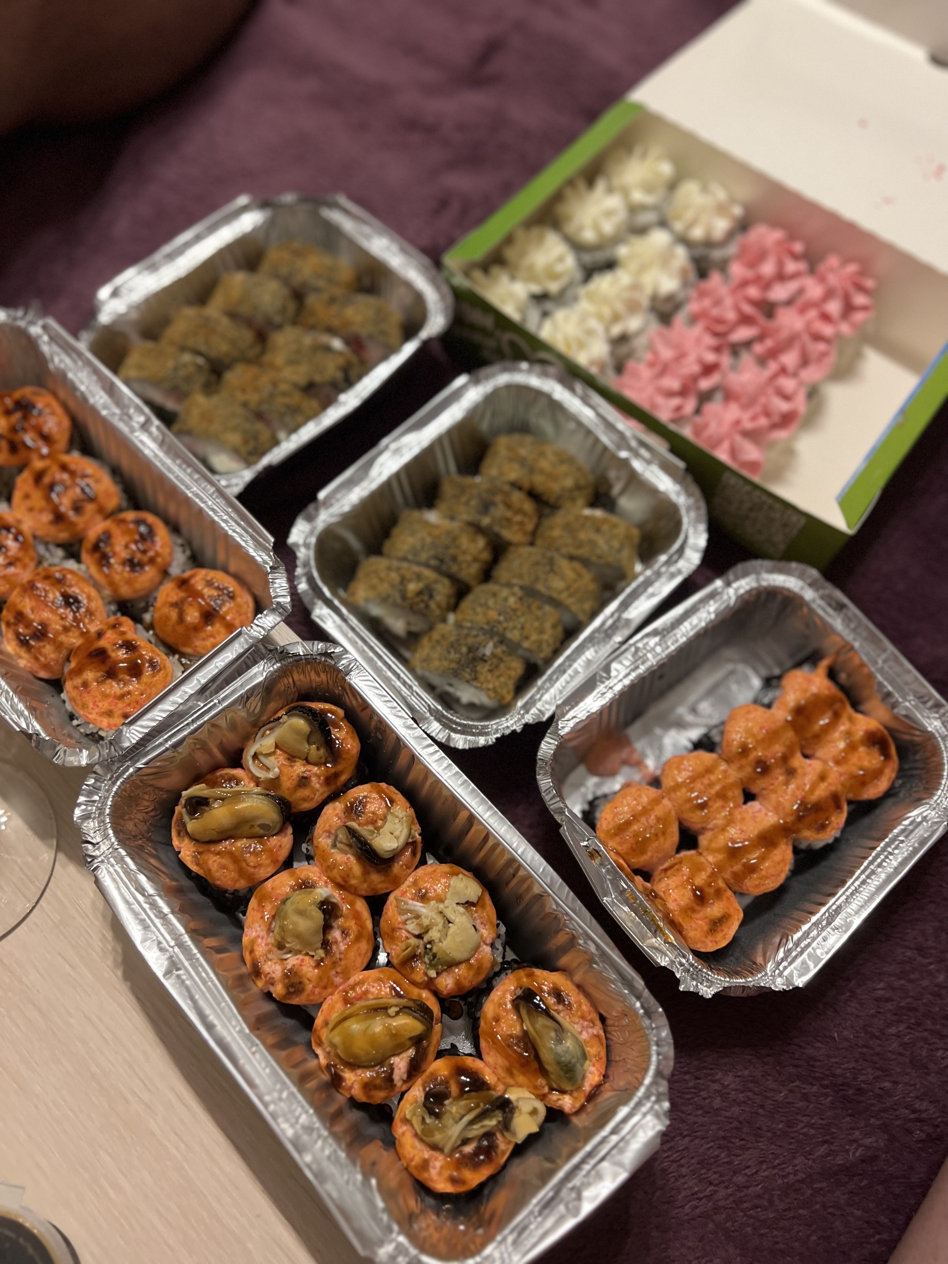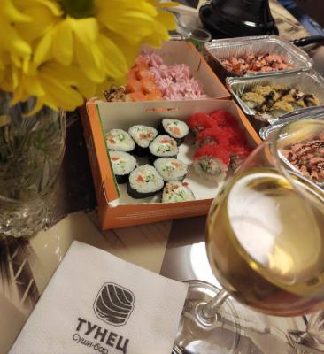 Суши просто огонь, все свежее, рис хорошо сварен. Однозначно советую) Будем покупать теперь всегда тут, спасибо вам!)