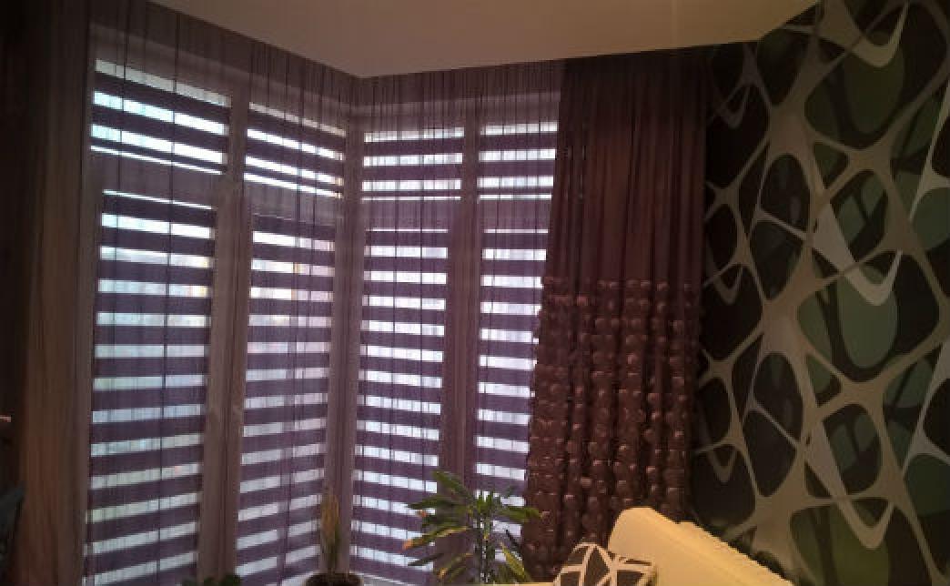 - Дизайнер имеет при себе все необходимые материалы, образцы тканей (около 300 тканей для рольштор).