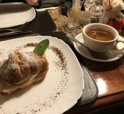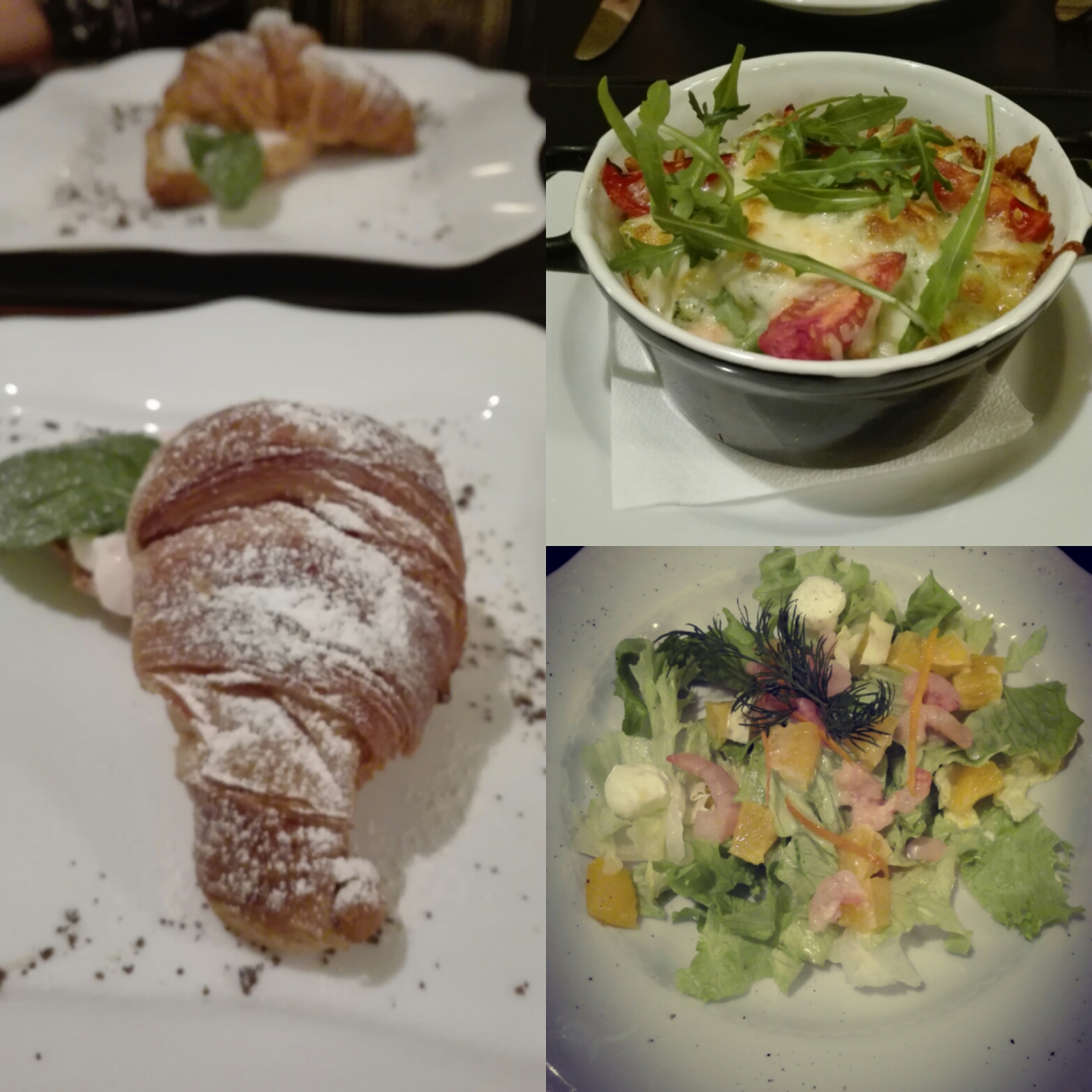 были с подругами в 4м. все брали ужин 1. очень понравилось кафе, атмосфера, уют, дизайн. в пятницу вечером народа было очень мало. можно спокойно посидеть, поговорить и очень сытно поесть.салат был на любителя, с меловым сладким соусом. горячее большое, сытное, вкусное. тяжело было осилить и потом еще есть вкусный круассан. короче, за эти деньги просто шикарный ужин, всем советую! а еще понравился официант, не навязчивый и отзывчивый. спасибо