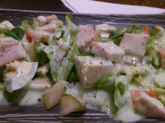 Салат из филе цыпленка, сыром моцарелла и йогуртовой заправкой