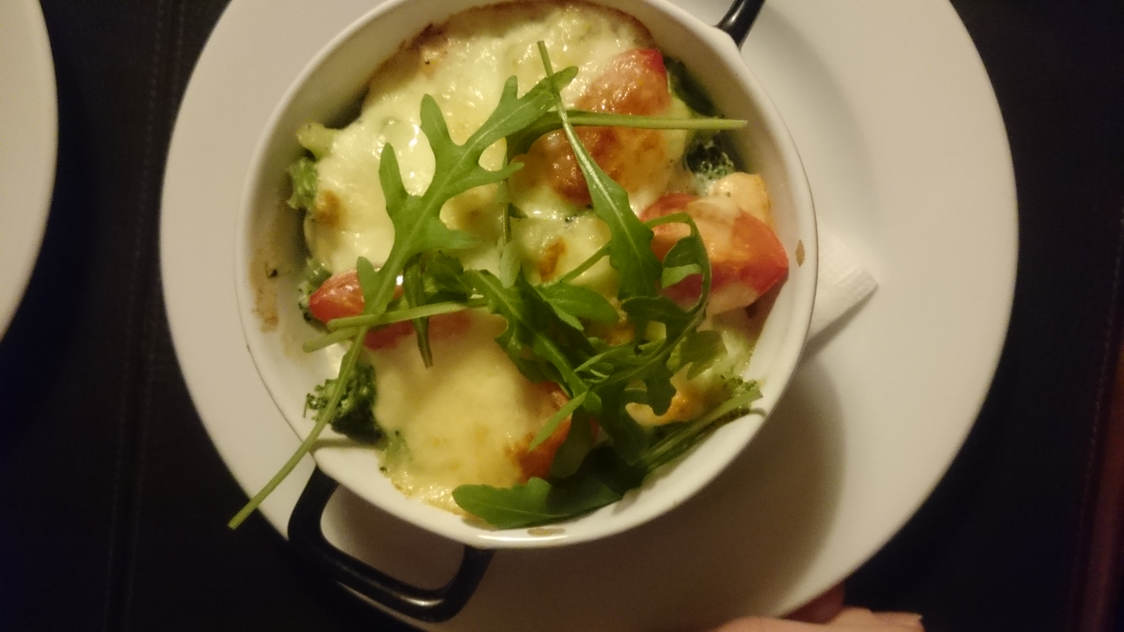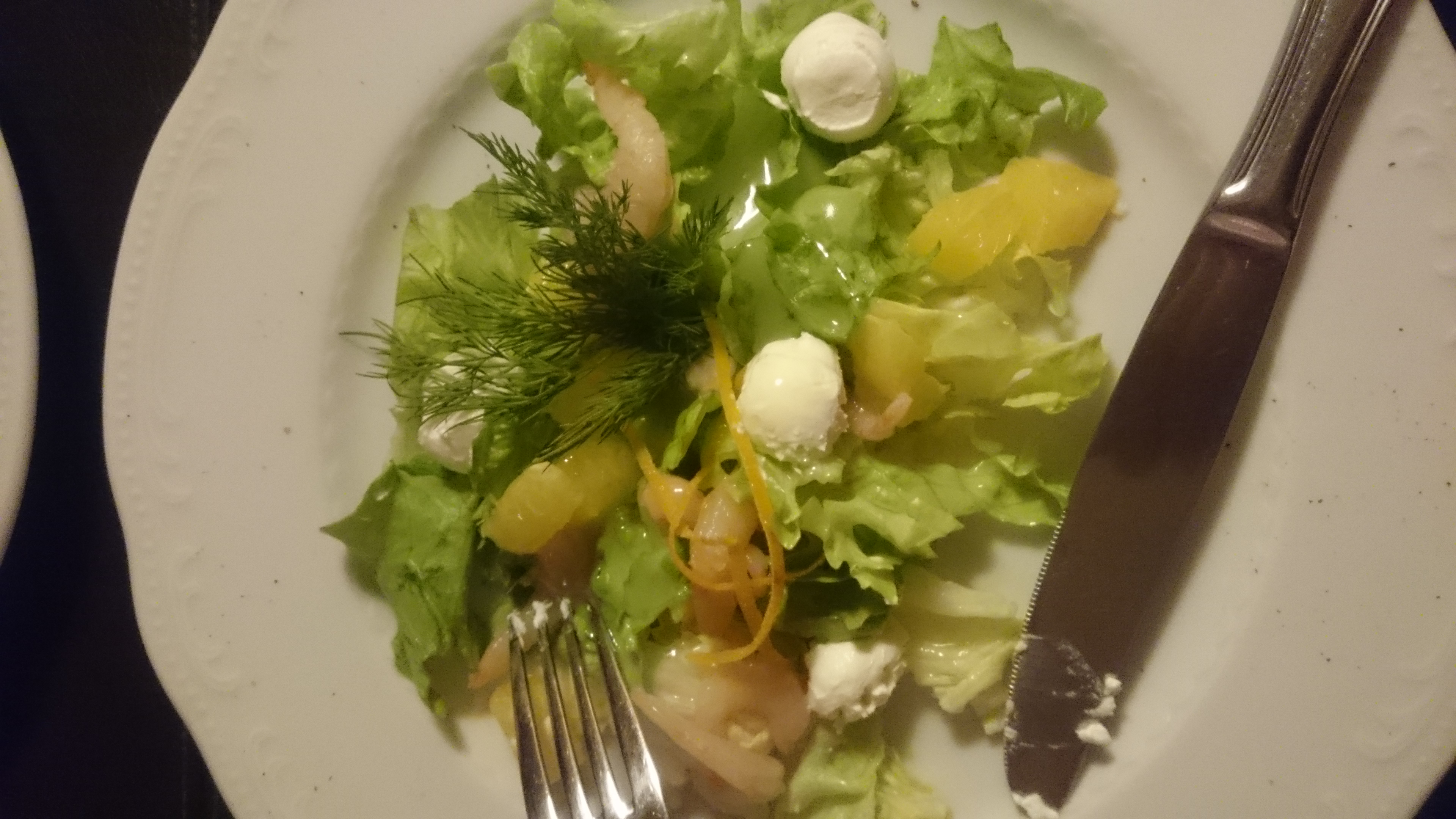 Ужинали 28.01.2018. Очень вкусно. Порции большие, мы пожалели, что не взяли с собой на 2 порции третьего едока. Всем бы хватило. Приятные салаты, свинина мягкая и сочная, сёмга с брокколи тоже хороша. Вместо круасанов на десерт нам подали по кусочку морковного и легкого творожного тортиков, мы не против.