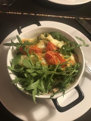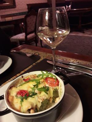 Уютно. Хорошее обслуживание. очень вкусные салаты. свинина. а вот гратен из одной картошки. рыбы там как кот наплакал. вместо круасанов были какие то пироженки. оочень вкусные. снимаю одну звезду за гратен.