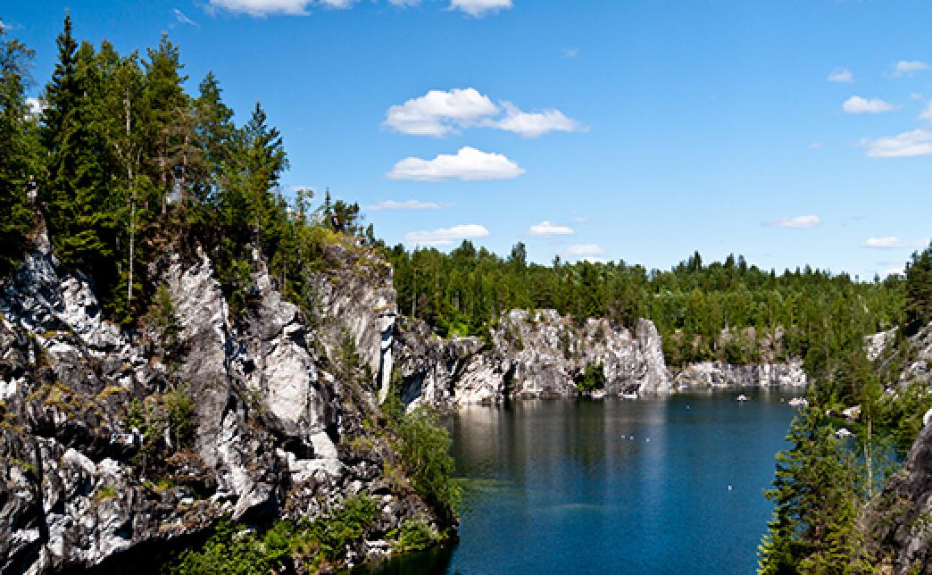 - Первая стоянка - Мраморный парк Рускеала. Этот живописнейший памятник природы и горного дела. С екатерининских времен здесь добывался первосортный российский мрамор. Сейчас - это одно из красивейших мест Карелии. Искусственные беломраморные скалы живописно нависают над изумрудом водной глади небольшого озера, пещеры-гроты манят своей тинственностью.