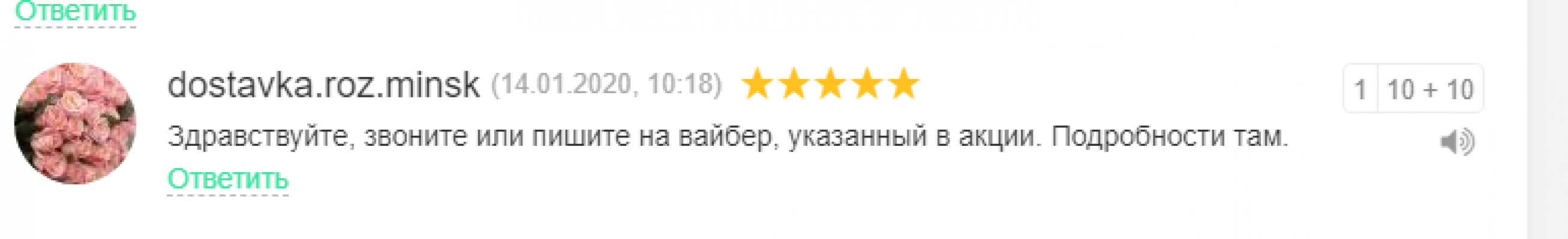 Менеджеры даже не удосужились принять заказ через вайбер. Написала с вопросом можно ли на завтра заказать букет из 15 веток ромашек с доставкой(это 45р+доставка). Мне ответили, что заказы принимаются только от 45р. Когда я спросила в чём мой заказ не соответствует, мне просто перестали отвечать