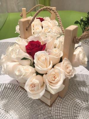 Спасибо большое за розочки в деревянном ящичке, такая милая композиция получилась  Заказала 4 марта на 6 марта 2 таких ящичка, по телефону оговорила все свои пожелания к композиции, все исполнили (несмотря на предпраздничную суету )!!! Курьер привез цветочки вовремя! Очень рекомендую!!!!