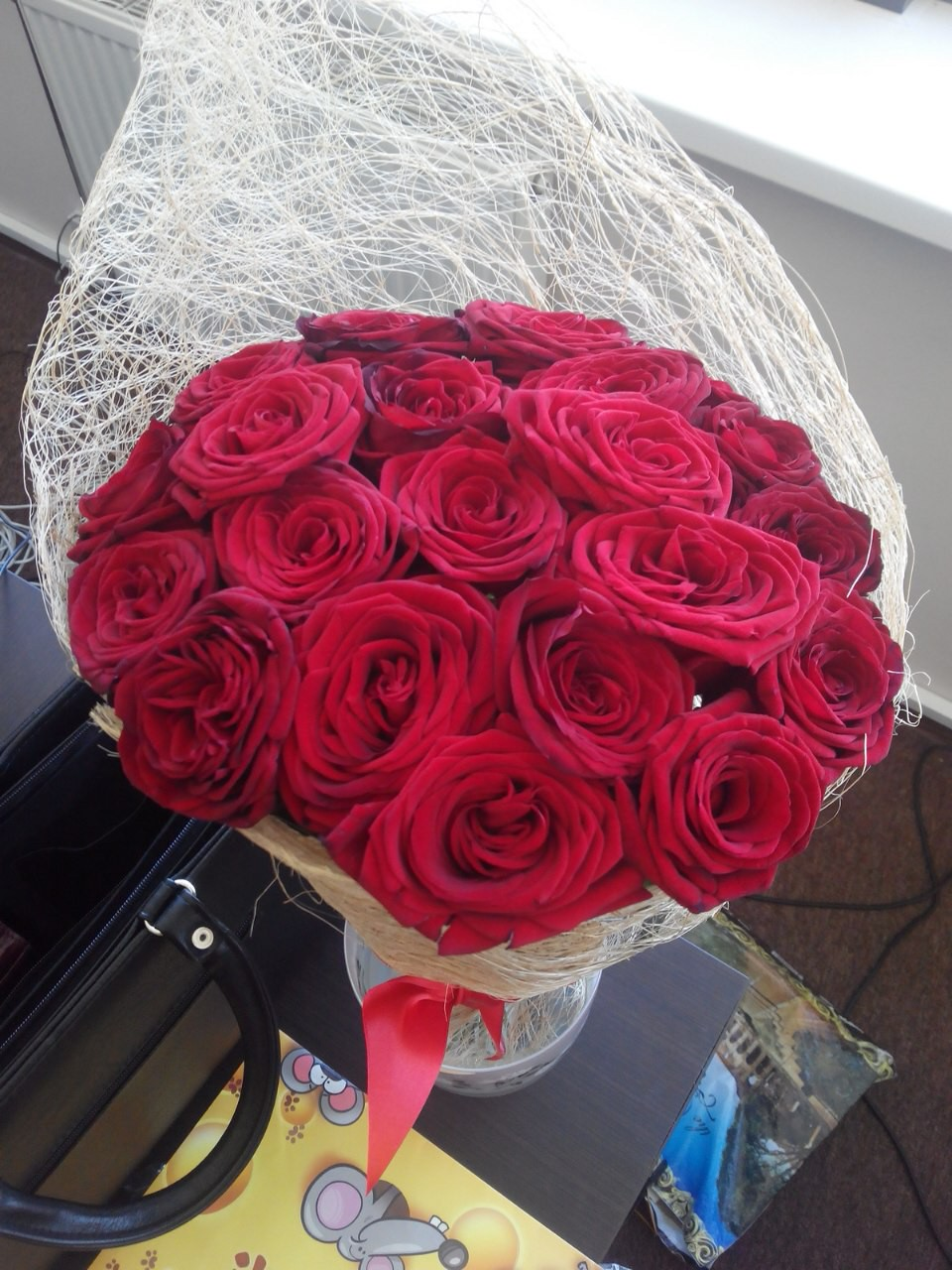 Заказывала доставку цветов. Девушки в салоне цветов очень милые, отзывчивые. К сожалению, в тот день в наличии были только красные розы, но букет получился очень красивым!