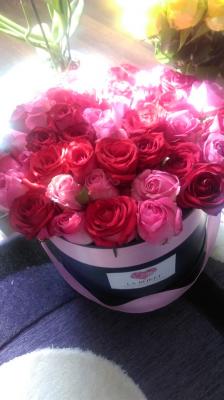 - коробка дизайнерская с розами 21 шт - 43 руб.